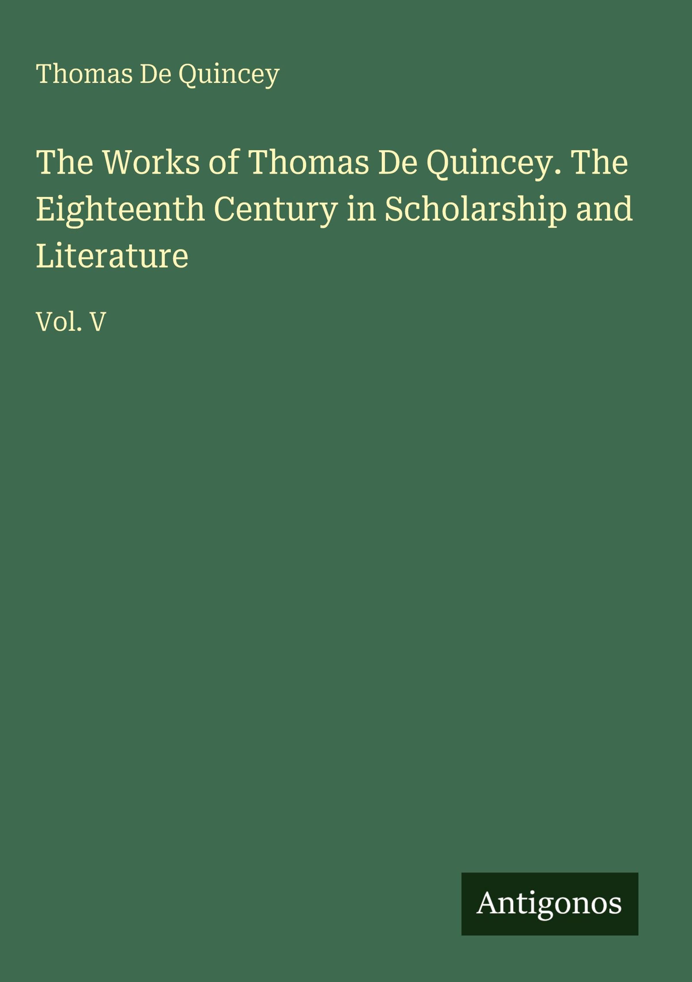 The Works of Thomas De Quincey. The Eighteenth Century in Scholarship and Literature