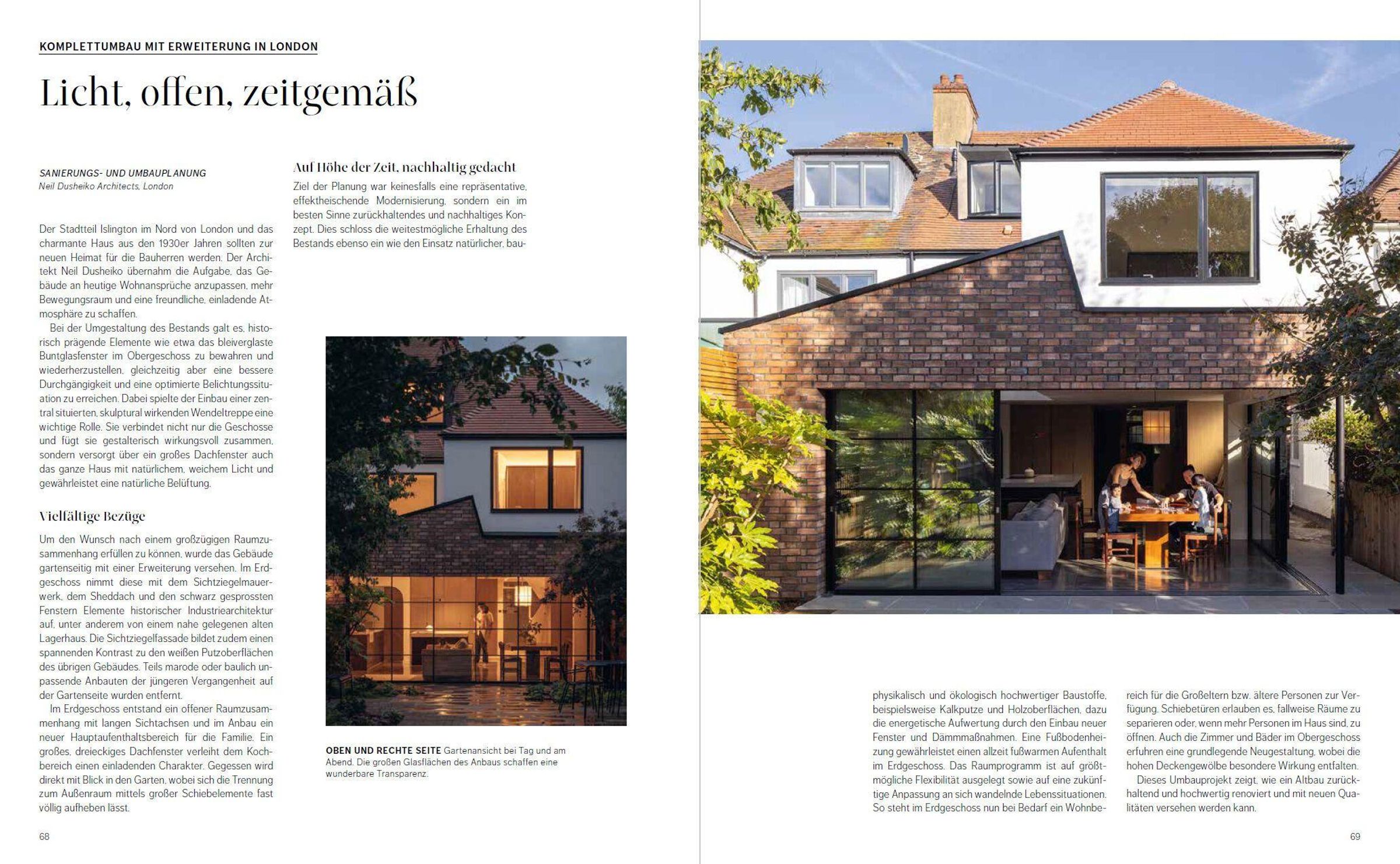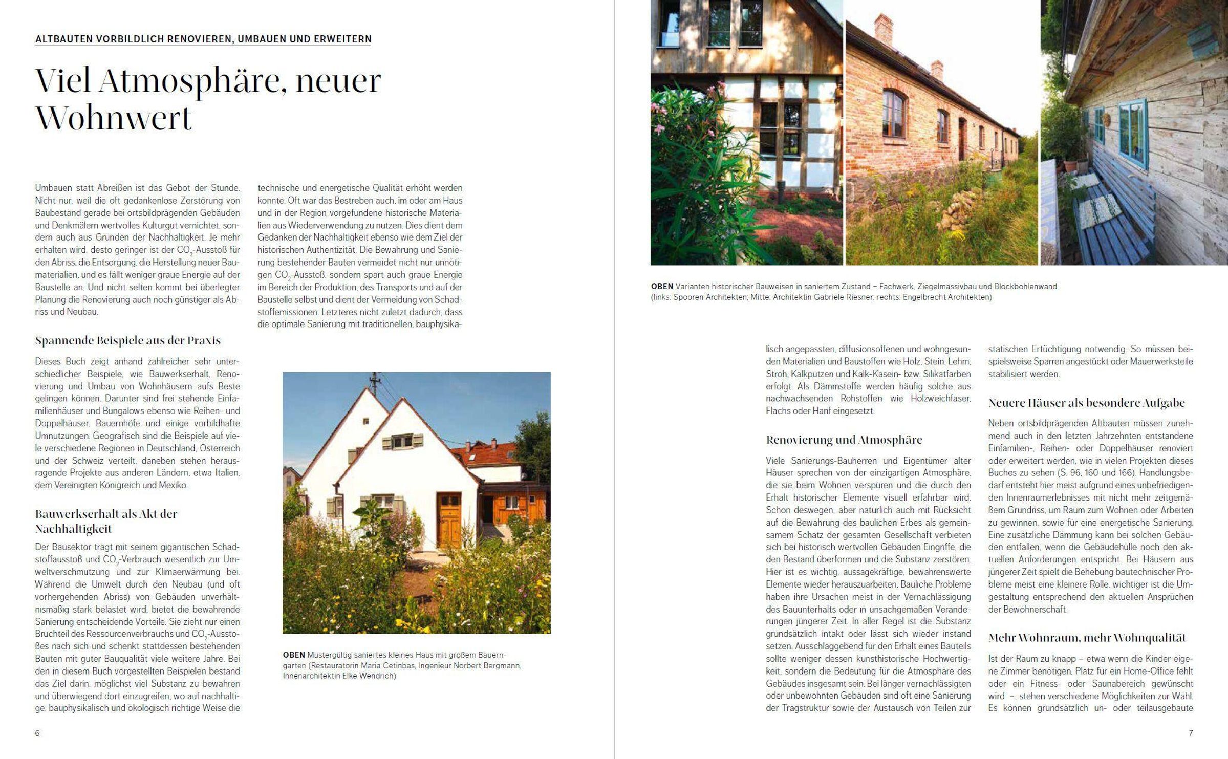 Ob Umbau älterer Einfamilienhäuser, Sanierung und Erweiterung von Siedlungshäusern, zeitgemäße Adaption von Bungalows oder Umnutzung von Scheunen und Werkstätten : Die Möglichkeiten zu Erhalt und Umnutzung von Bestandsbauten sind so vielfältig wie nie. 27 vorbildhafte Objekte aus dem deutschsprachigen Raum und darüber hinaus bieten eine Vielzahl an Ideen auf hohem gestalterischem und bautechnischem Niveau, geplant und betreut von ausgewiesenen Expert*innen bei Sanierung und Renovierung . Der Erhalt vorhandener Bausubstanz ist heute eine der wichtigsten Bauaufgaben. Bauherr*innen sparen damit nicht nur Geld und Zeit , sondern vermeiden auch in hohem Maße CO2, Bauschutt und Schadstoffe. Nicht zuletzt leisten sie einen wichtigen Beitrag zur Bewahrung baukultureller, identitätsstiftender Werte.