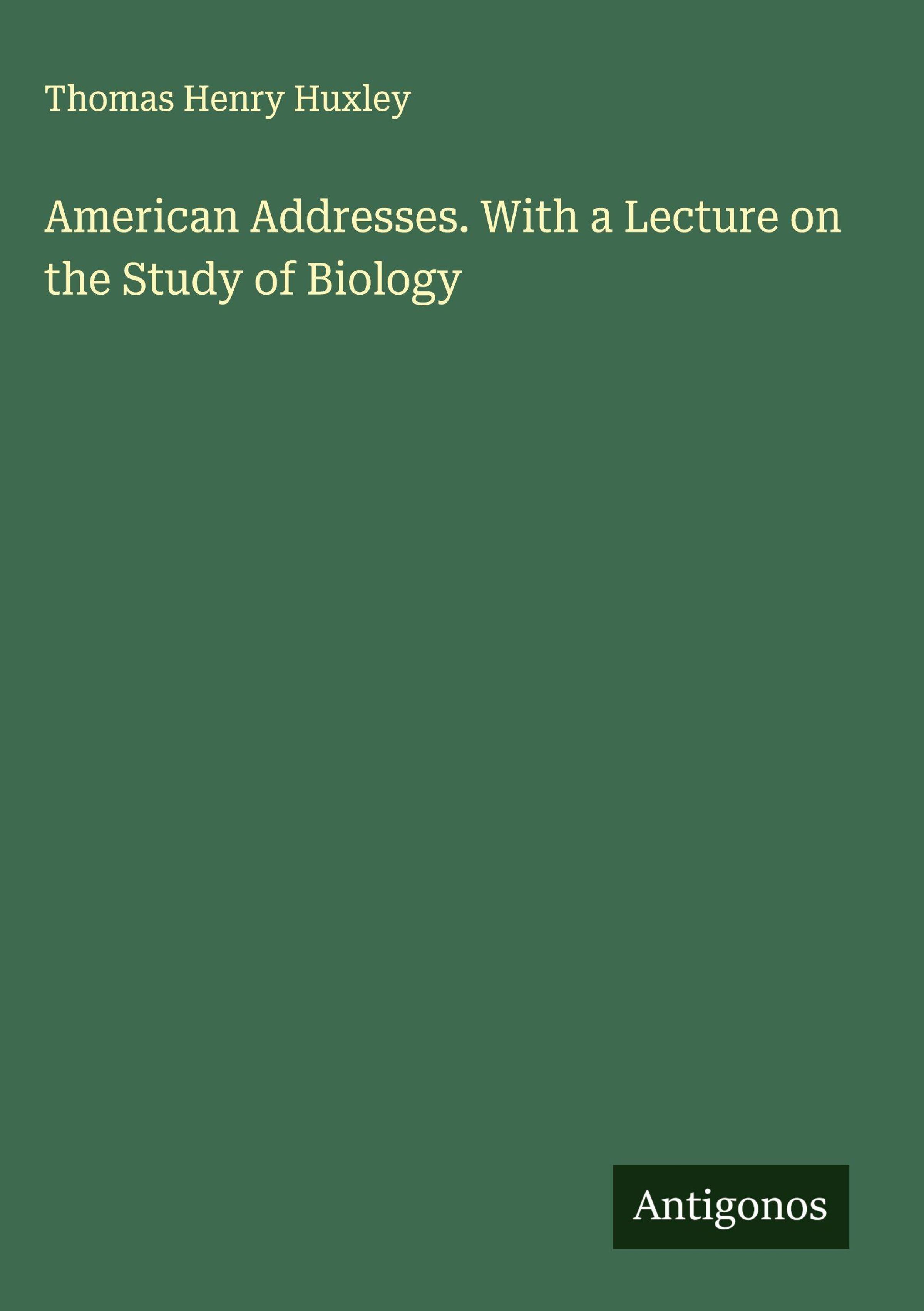 Thomas Henry Huxley: American Addresses. With a Lecture on the Study of Biology, Gebunden