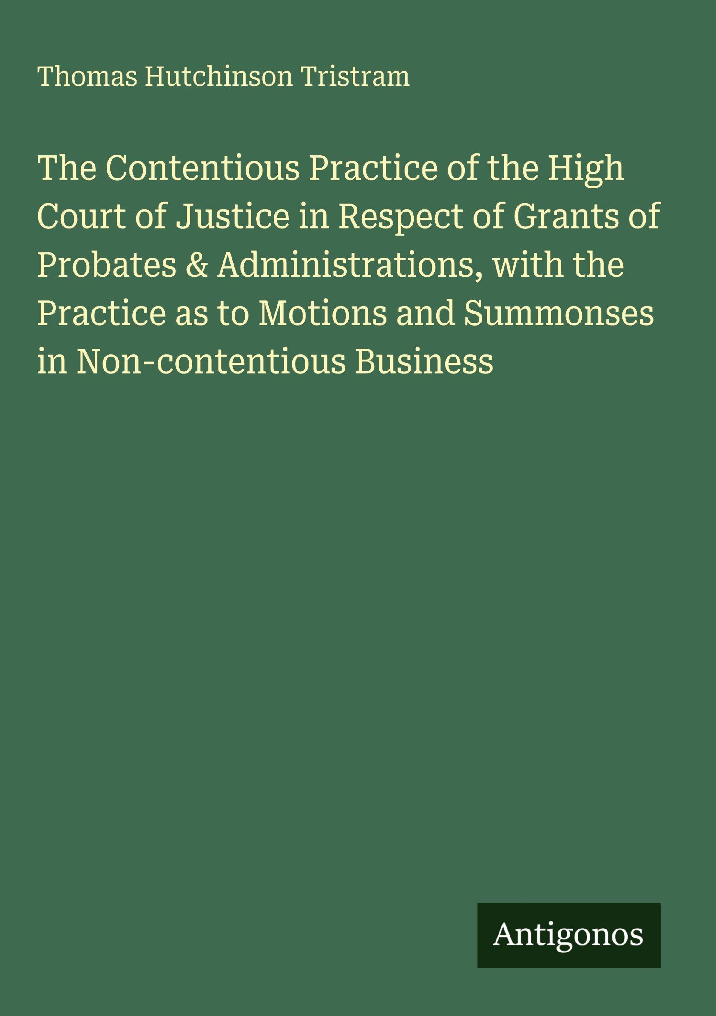 Thomas Hutchinson Tristram: The Contentious Practice of the High Court of Justice in Respect of Grants of..., Gebunden