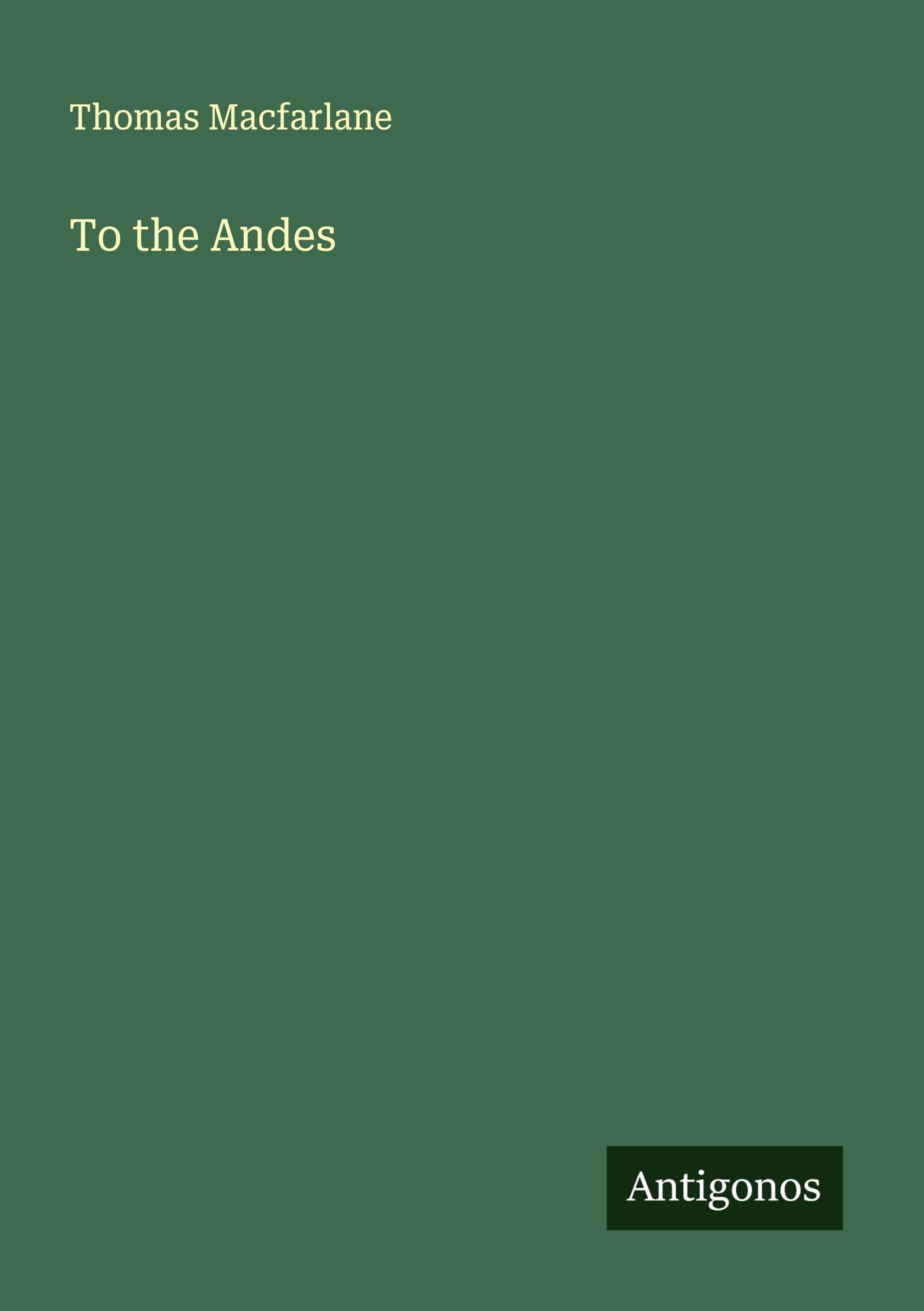 Thomas Macfarlane: To the Andes, Kartoniert / Broschiert