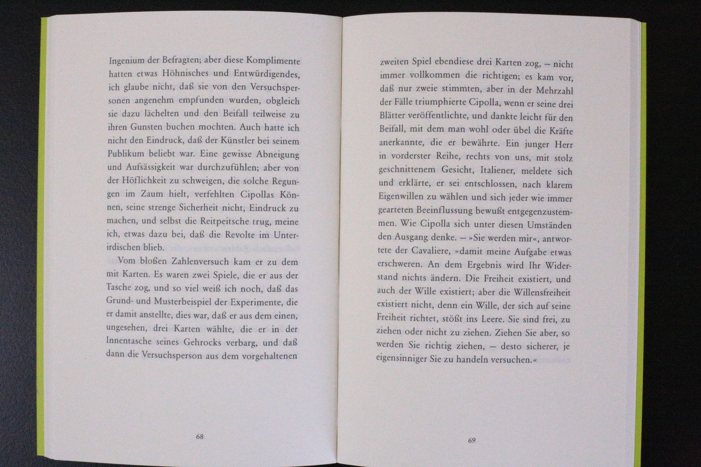 'Ich kann nur sagen, dass es viel zu weit geht, in dem Zauberer Cipolla einfach die Maskierung Mussolinis zu sehen, aber es versteht sich andererseits, dass die Novelle entschieden einen moralisch-politischen Sinn hat.'