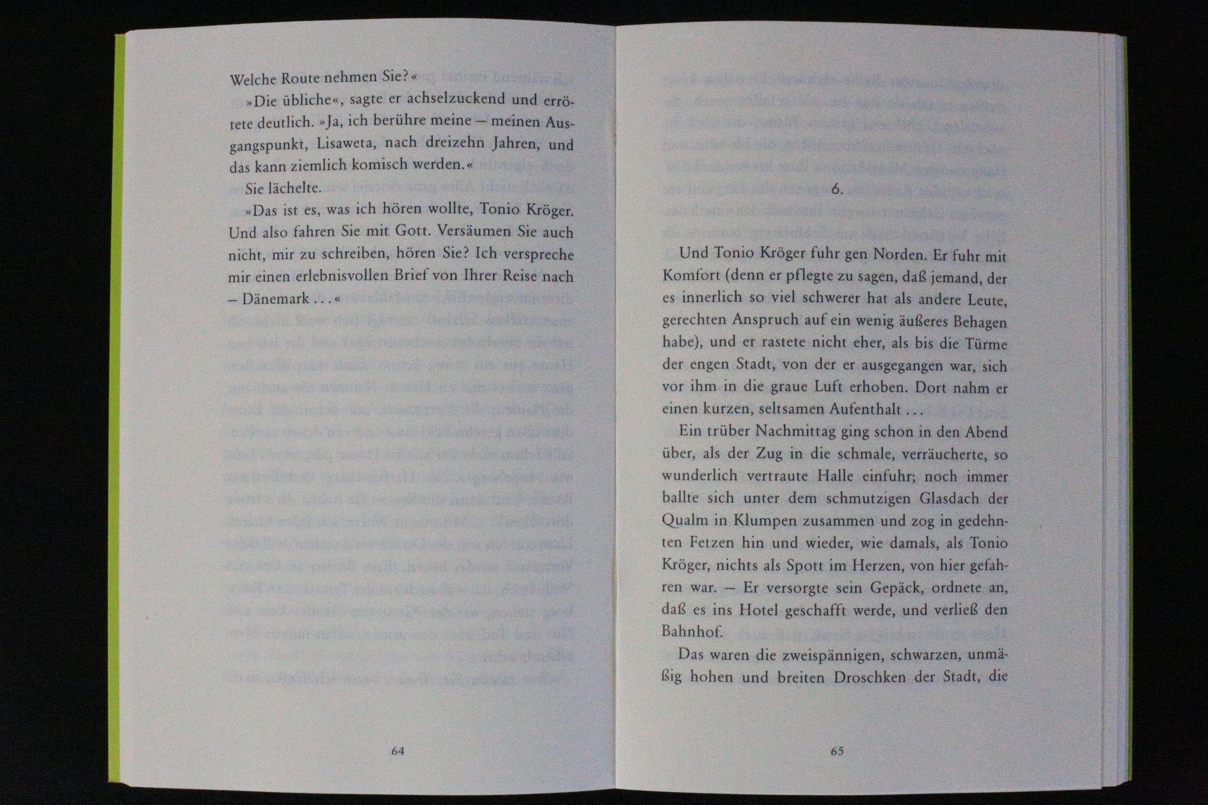 In Tonio Kröger verarbeitet Thomas Mann Erlebnisse und Erfahrungen aus seiner eigenen Jugend in Lübeck. - Der junge Tonio schreibt viel lieber Verse und liest Don Carlos, als sich für Reitsport zu interessieren. Er fühlt sich als Außenseiter, fühlt sich hin- und hergerissen zwischen Bürger- und Künstlertum, zwischen Nord- und Südeuropa. Er ist auf der Suche nach seiner Identität, kann sich aber in keiner Welt daheim fühlen.
