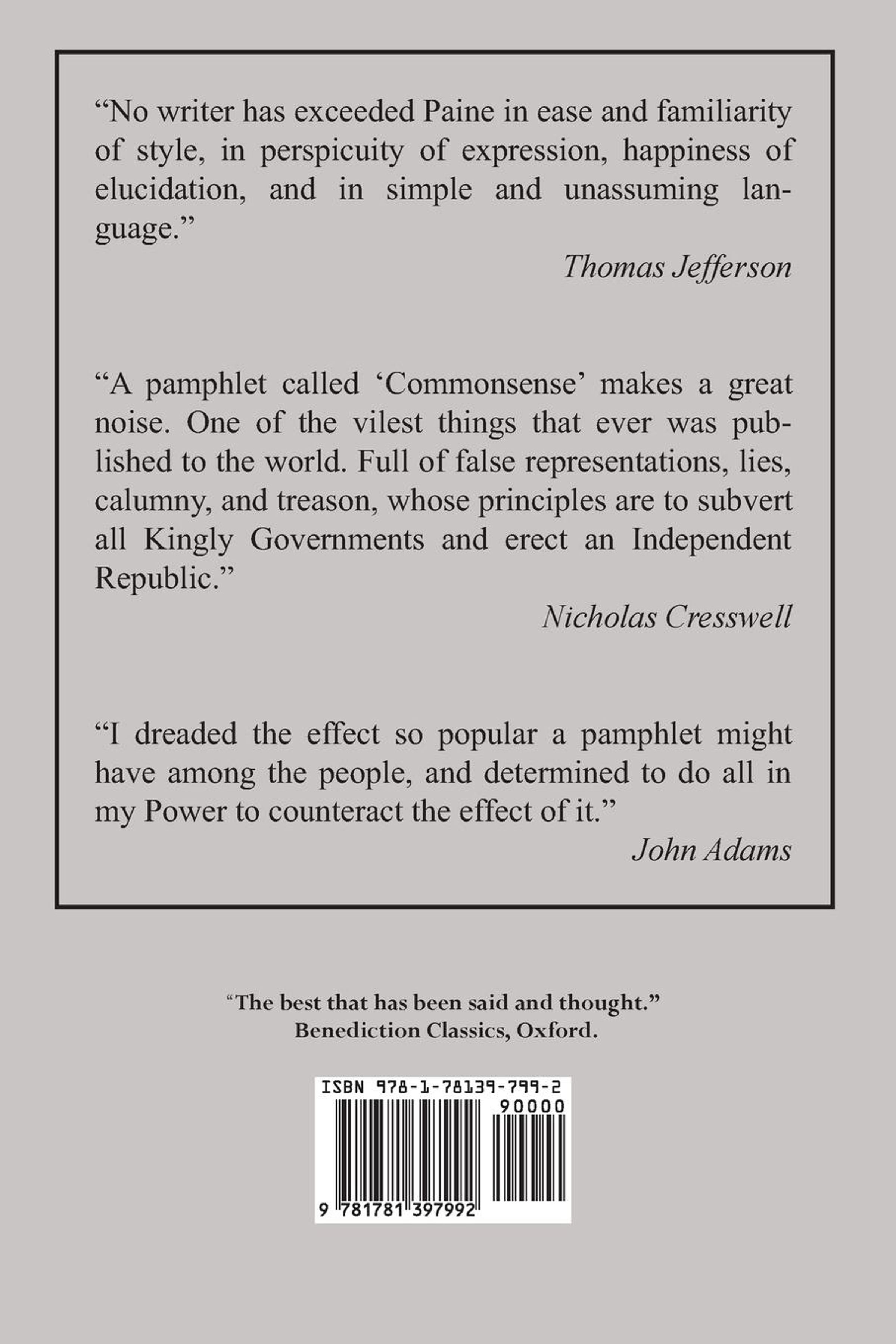 "No writer has exceeded Paine in ease and familiarity of style, in perspicuity of expression, happiness of elucidation, and in simple and unassuming language." -- Thomas Jefferson..