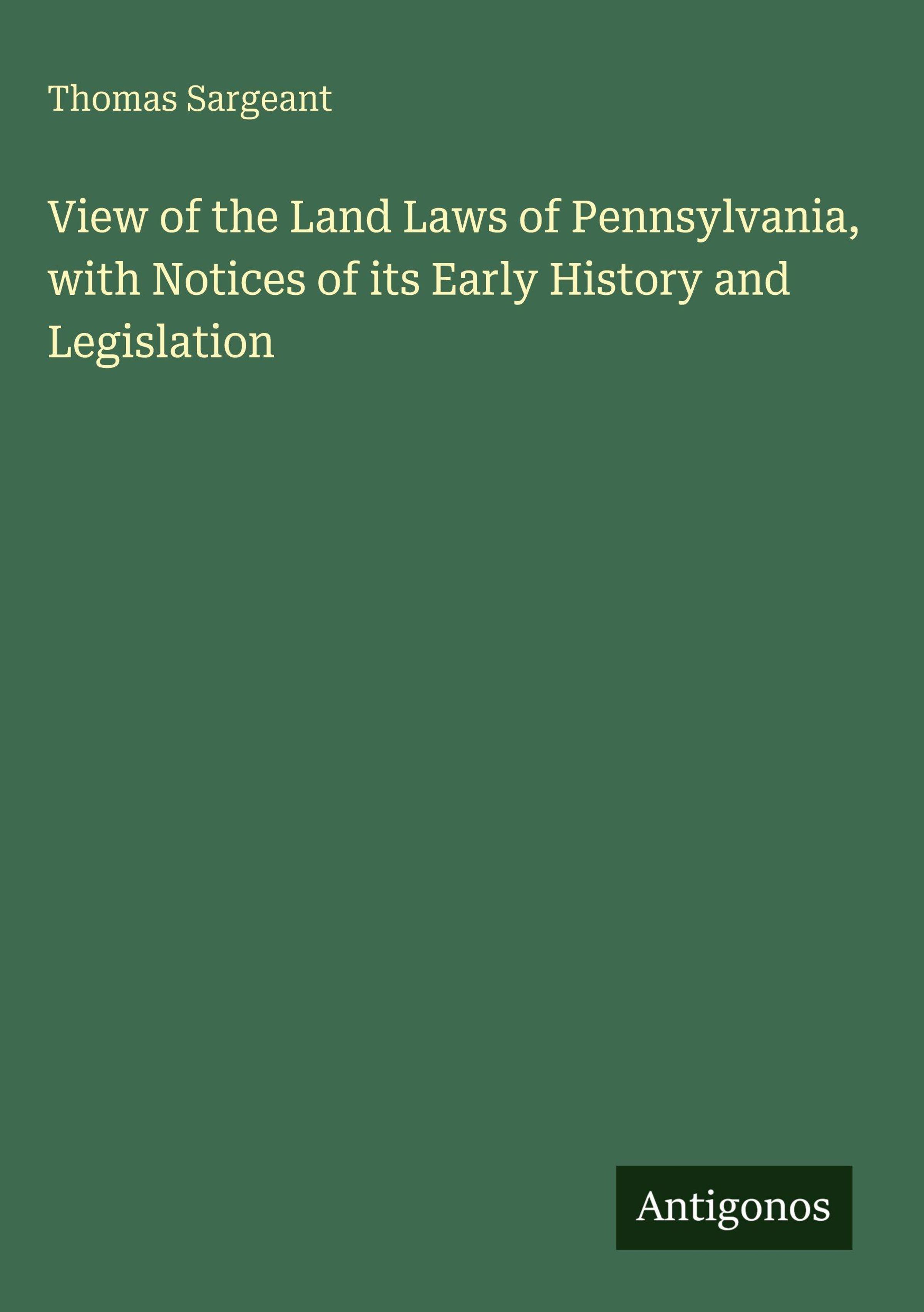 Thomas Sargeant: View of the Land Laws of Pennsylvania, with Notices of its Early History and Legislation, Gebunden