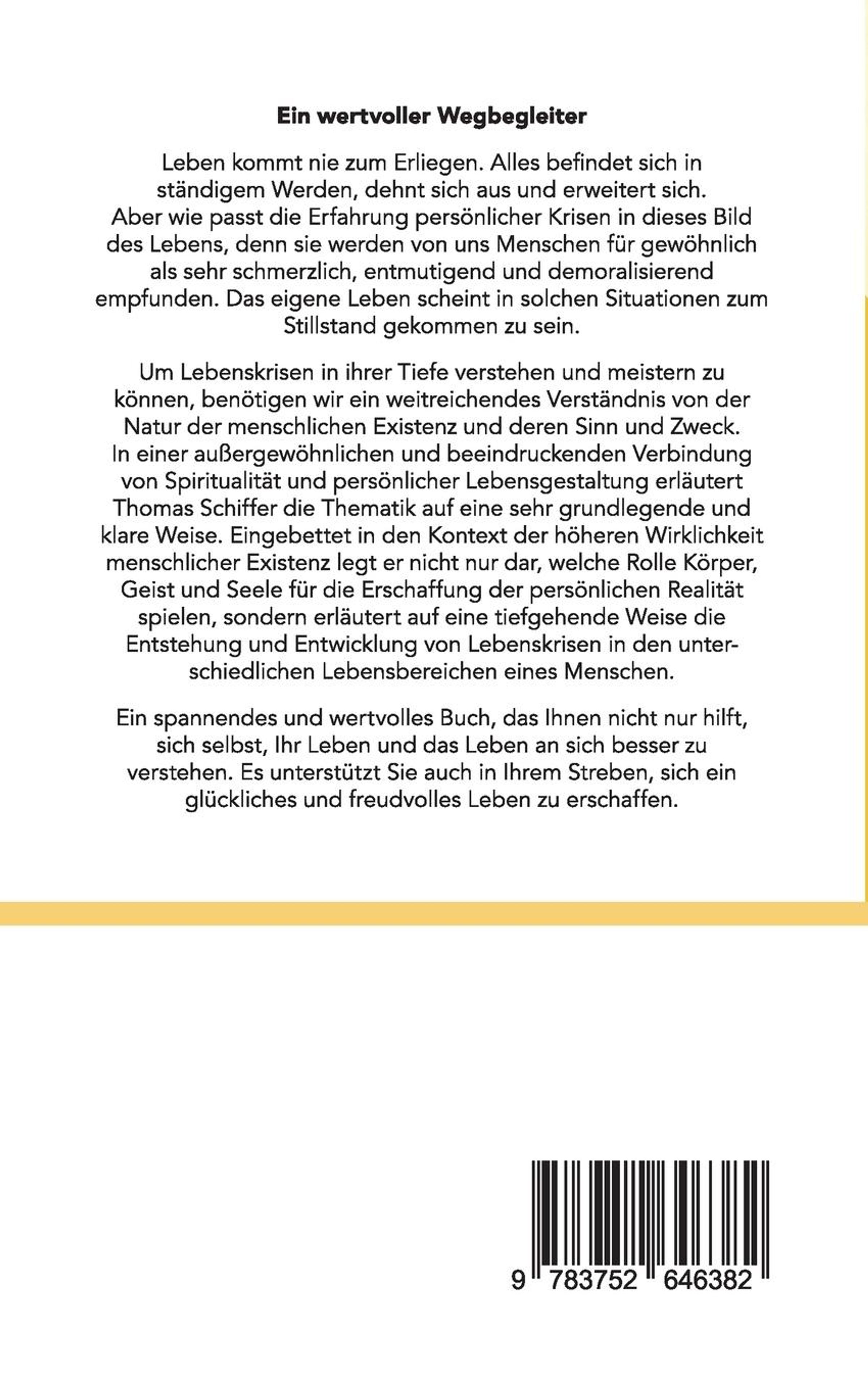 Um Lebenskrisen in ihrer Tiefe verstehen und meistern zu können, benötigen wir ein weitreichendes Verständnis von der Natur der menschlichen Existenz und deren Sinn und Zweck. In einer außergewöhnlichen und beeindruckenden Verbindung von Spiritualität und persönlicher Lebensgestaltung erläutert der Autor die Thematik auf eine sehr grundlegende und klare Weise. Eingebettet in den Kontext der höheren Wirklichkeit menschlicher Existenz legt er nicht nur dar, welche Rolle Körper, Geist und Seele für die Erschaffung der persönlichen Realität spielen, sondern erläutert auf eine tiefgehende Weise die Entstehung und Entwicklung von Lebenskrisen in den unterschiedlichen Lebensbereichen eines Menschen.