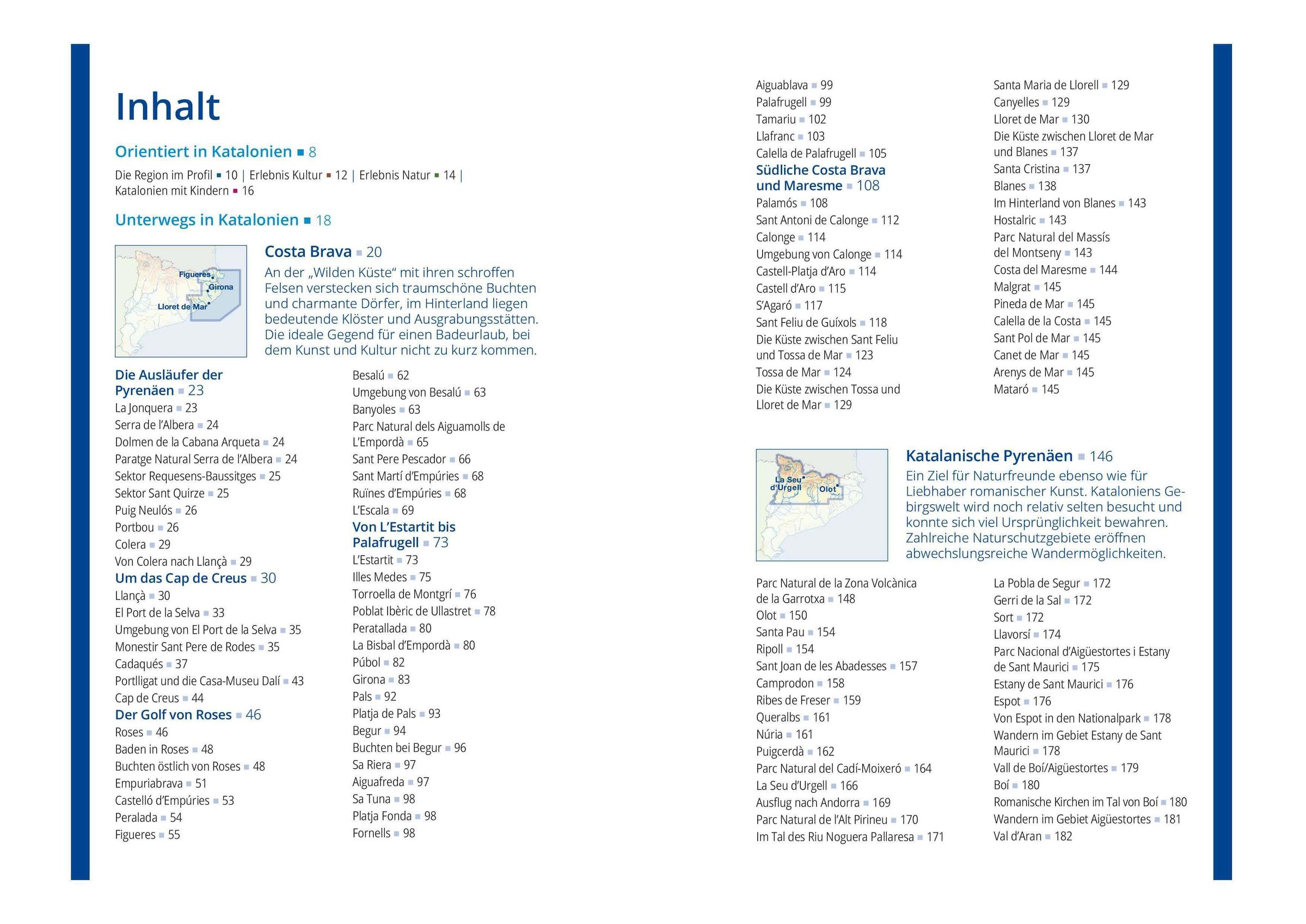 Unterwegs in Katalonien: Ausführliche Kapitel zu Costa Brava und Costa Daurada, zu Barcelona und Umgebung und zu den katalanischen Pyrenäen - alle Orte und Sehenswürdigkeiten im Detail.