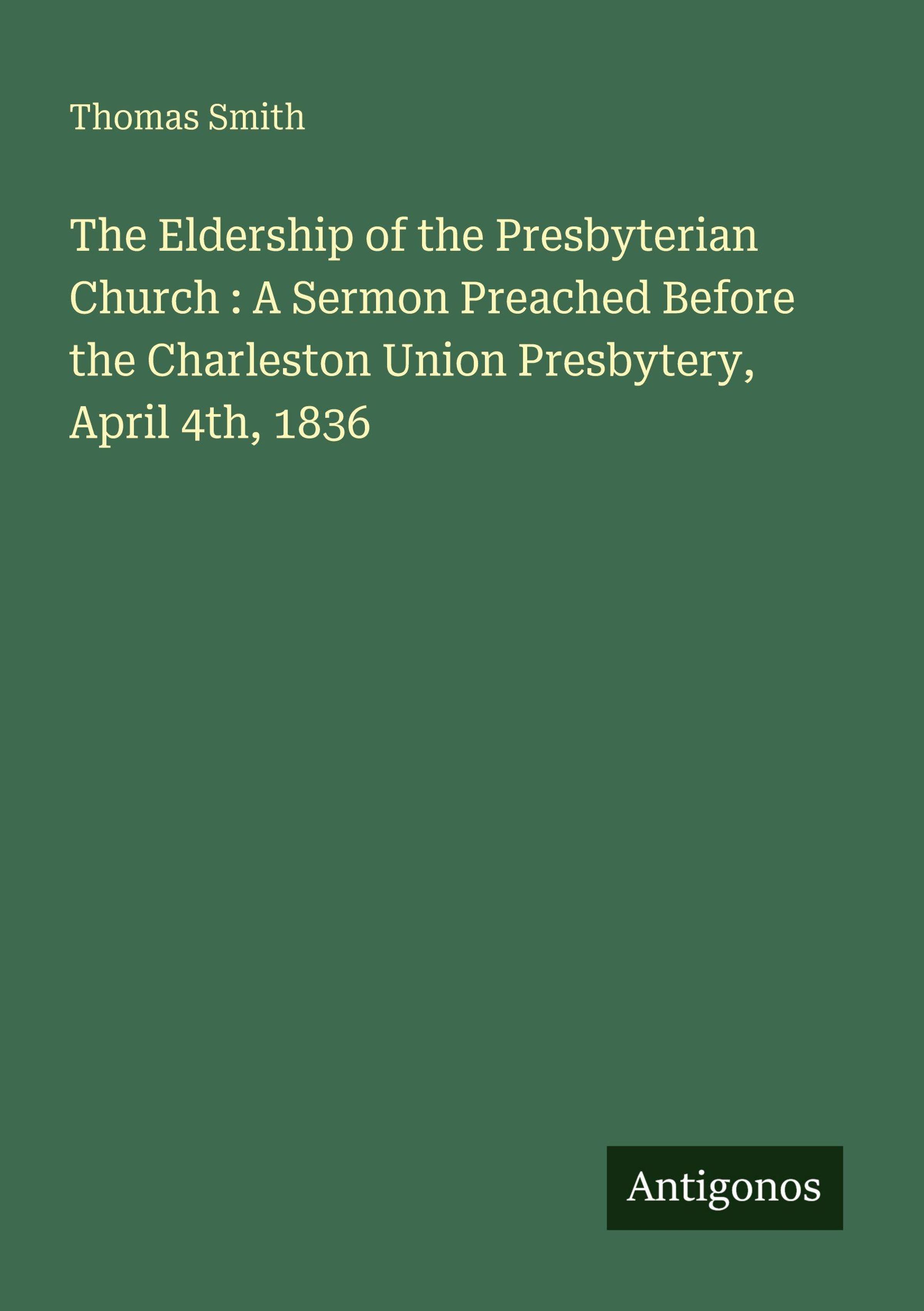 The Eldership of the Presbyterian Church : A Sermon Preached Before the Charleston Union Presbytery, April 4th, 1836