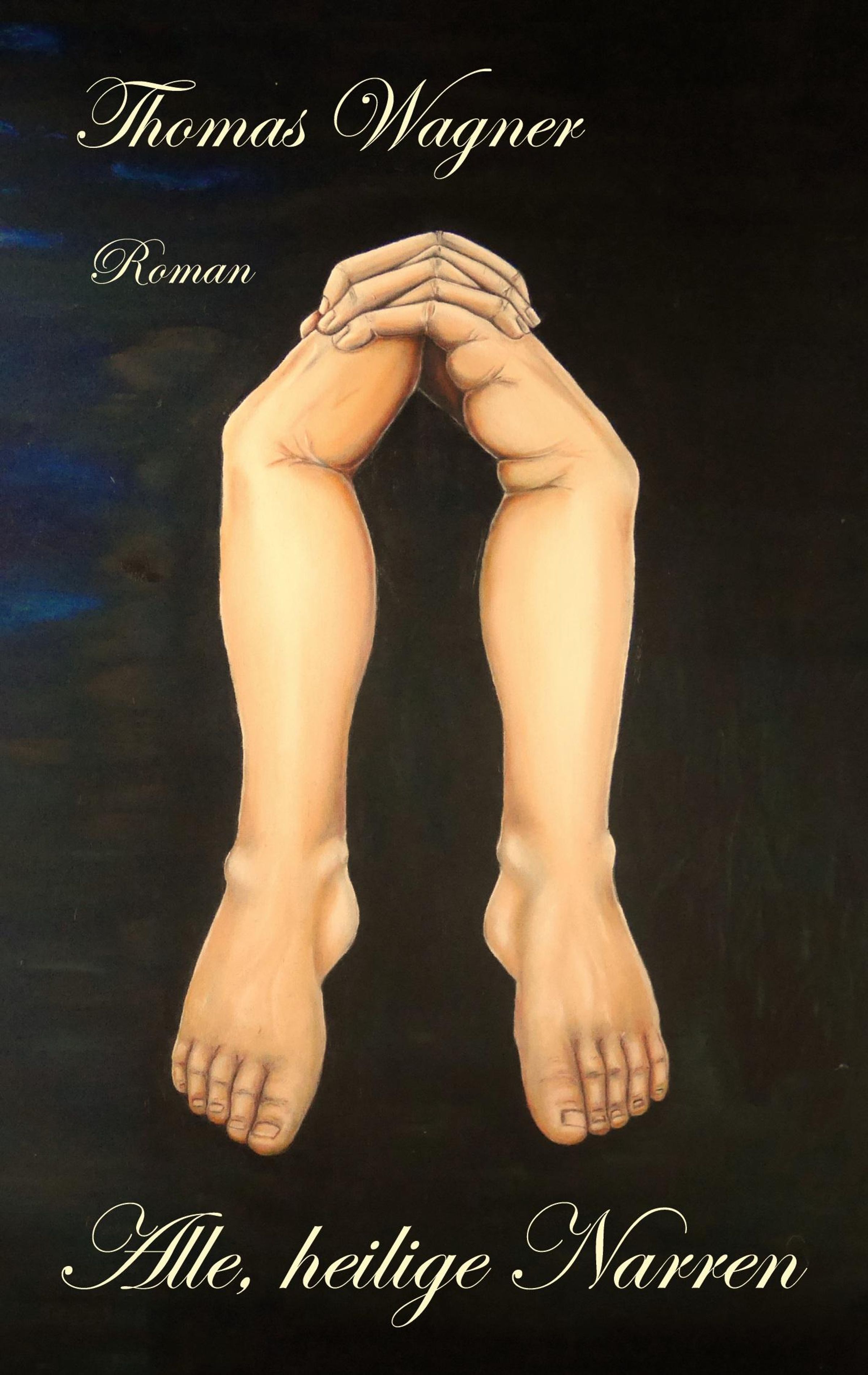 „Thomas Wagner, Roman, Alle, heilige Narren.“ Eine Illustration zeigt Beine, die in verschränkten Händen enden., Buch
