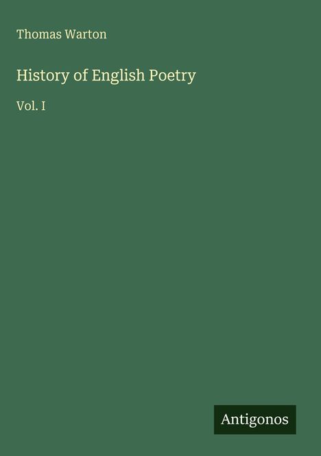 Thomas Warton: History of English Poetry, Buch, Buch
