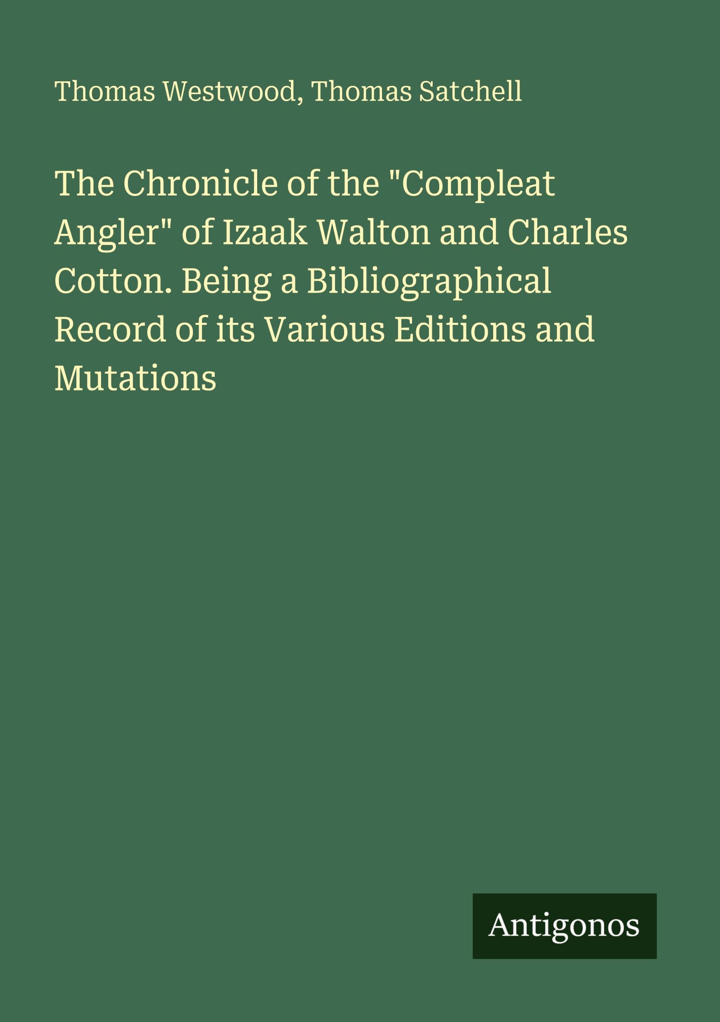 The Chronicle of the "Compleat Angler" of Izaak Walton and Charles Cotton. Being a Bibliographical Record of its Various Editions and Mutations