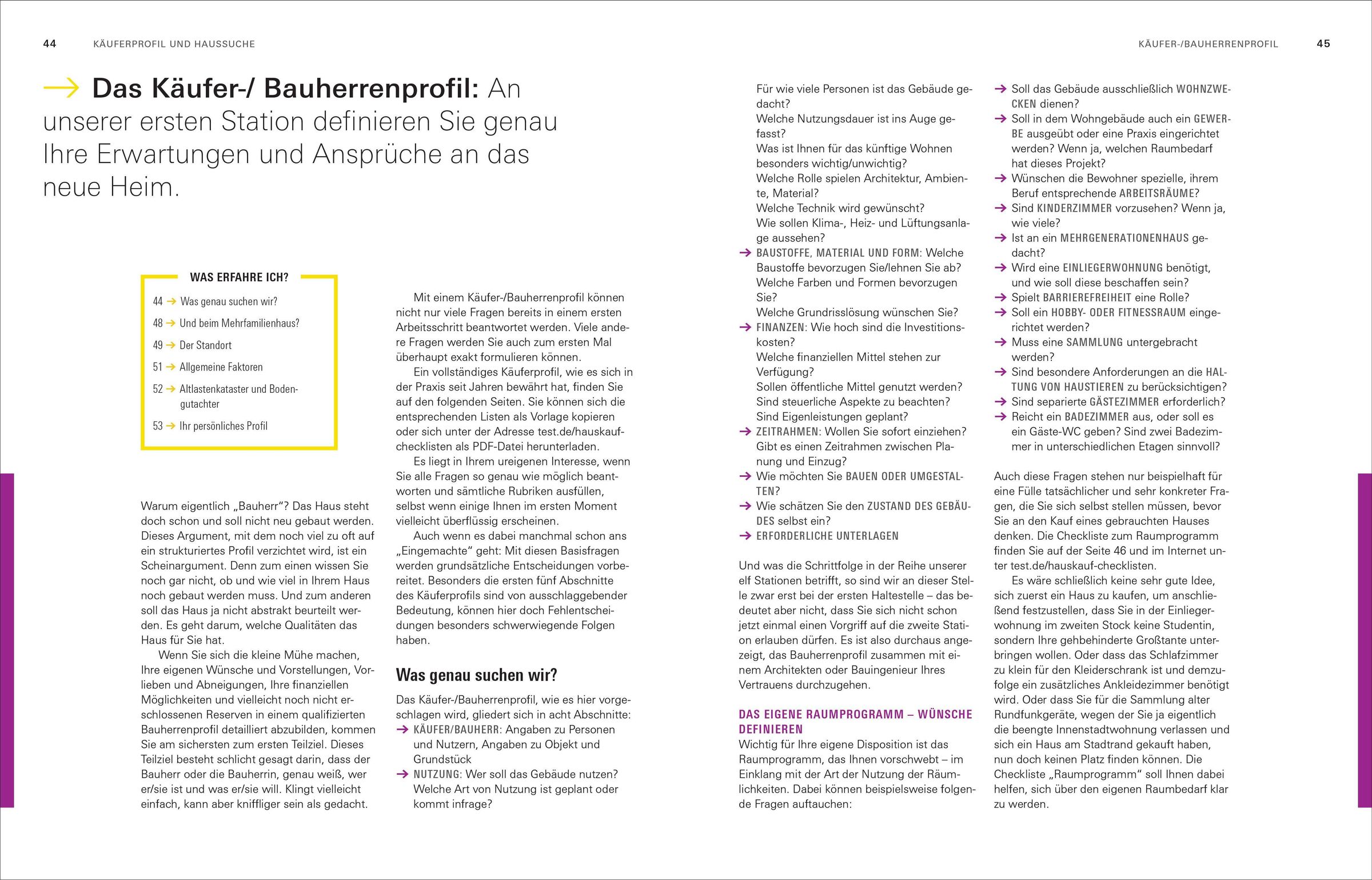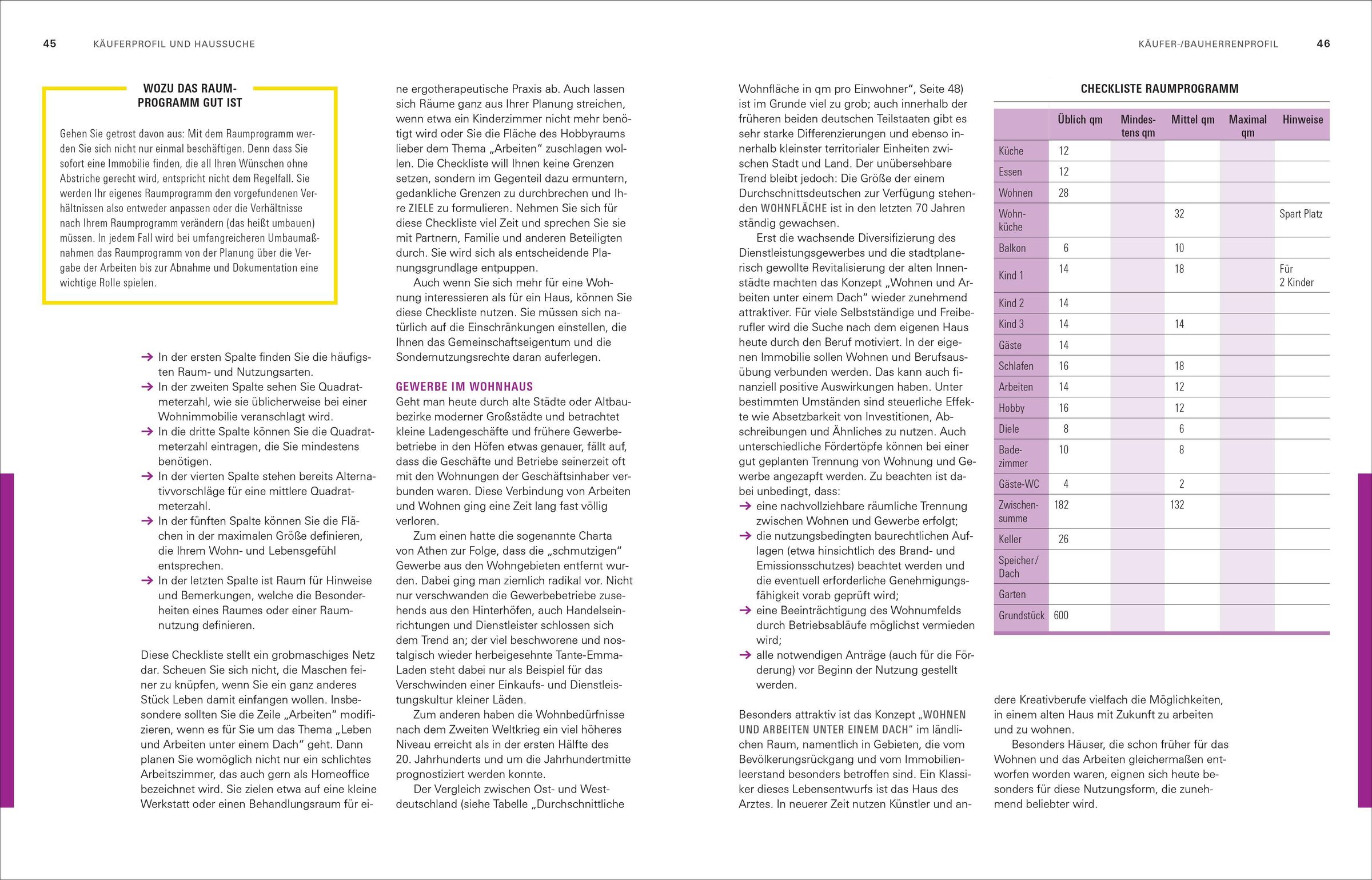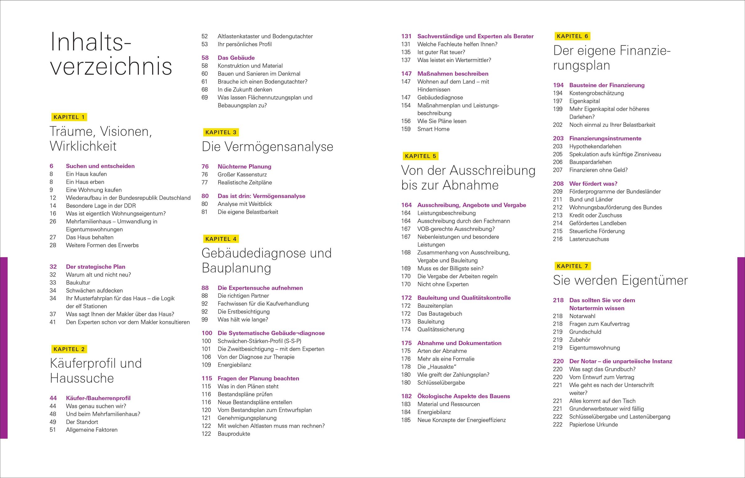 Checklisten helfen bei der Erstbesichtigung und der systematischen Gebäudediagnose, eine umfassende Vermögensanalyse führt zu einem soliden Finanzierungsplan - inklusive Fördermöglichkeiten über die KfW oder über die Bundesländer und Kommunen. Auch Modernisierung und Sanierung kommen nicht zu kurz: Ein konkreter Maßnahmenplan, ökologische Aspekte des Bauens und eine ausführliche Leistungsbeschreibung sorgen für eine detaillierte Kostenplanung. Erfolgreich realisierte Praxisbeispiele runden das Handbuch ab und geben wertvolle Anregungen.