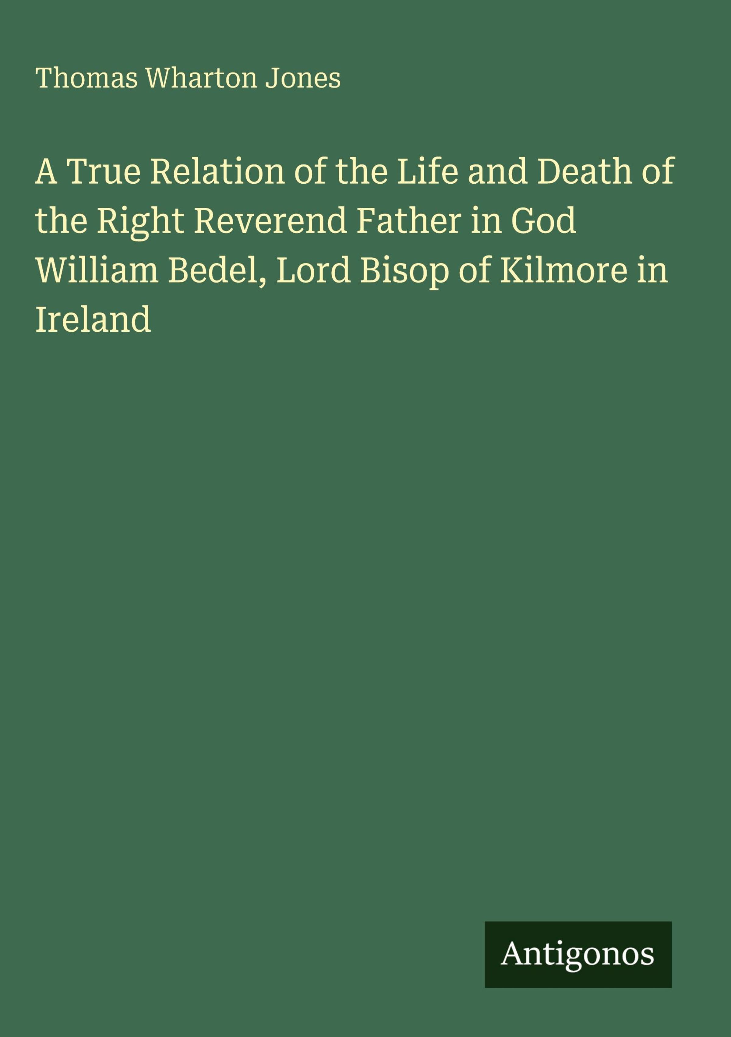 Thomas Wharton Jones: A True Relation of the Life and Death of the Right Reverend Father in God William Bedel,..., Gebunden