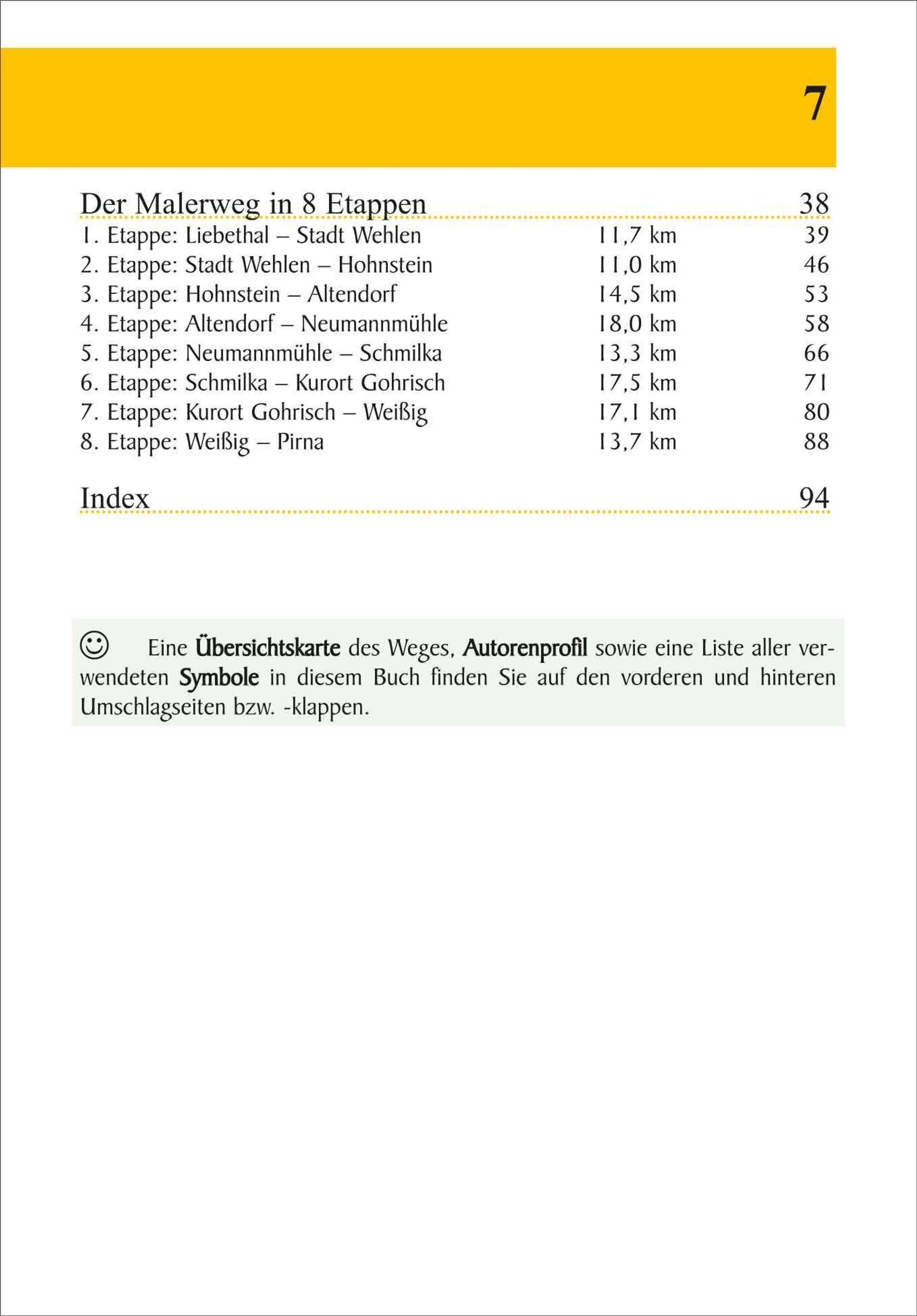 Schon die romantischen Maler des 18. Jahrhunderts waren von den Felsformationen des Elbsandsteingebirges in Sachsen fasziniert - so kam der Malerweg zu seinem Namen. Auf knapp 117 km folgt er den Spuren dieser Künstler durch die beeindruckende Landschaft am Ufer der Elbe, vorbei an spektakulären Aussichtspunkten und Sehenswürdigkeiten wie der Festung Königstein und der berühmten Bastei. Der Wanderführer beschreibt den Weg von Liebethal nach Pirna in acht Etappen, berichtet Wissenswertes zu den Besonderheiten der Region und liefert praktische Infos zu Unterkünften und Einkehrmöglichkeiten. Genaue Karten, Höhenprofile und GPS-Tracks erleichtern die Orientierung; allgemeine Reise-Infos helfen bei der Planung der Wanderung.