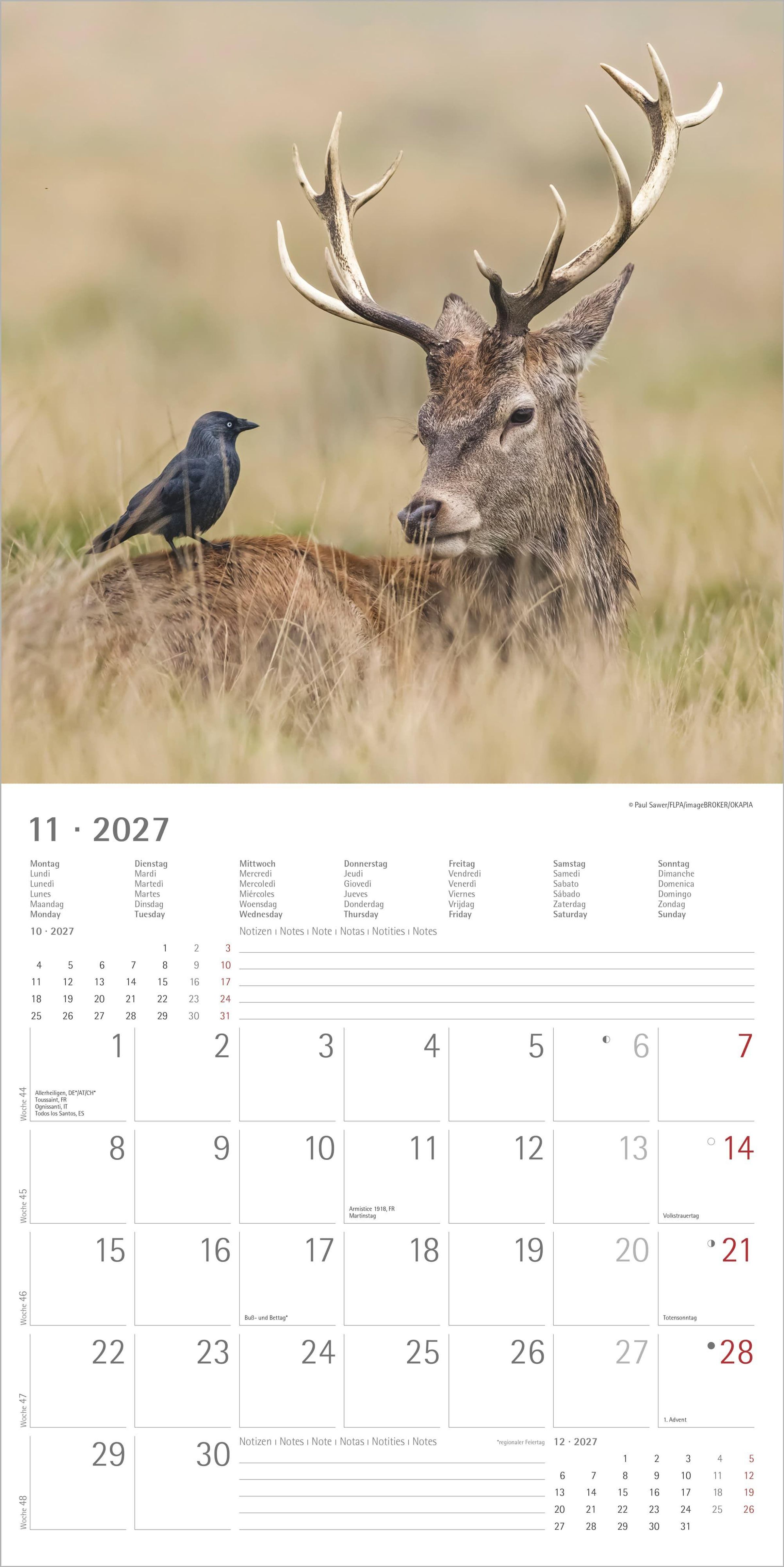 6-sprachiges Kalendarium: DE/FR/IT/ES/NL/GB mit Feiertagen und Ferienterminen für DE/AT/CH