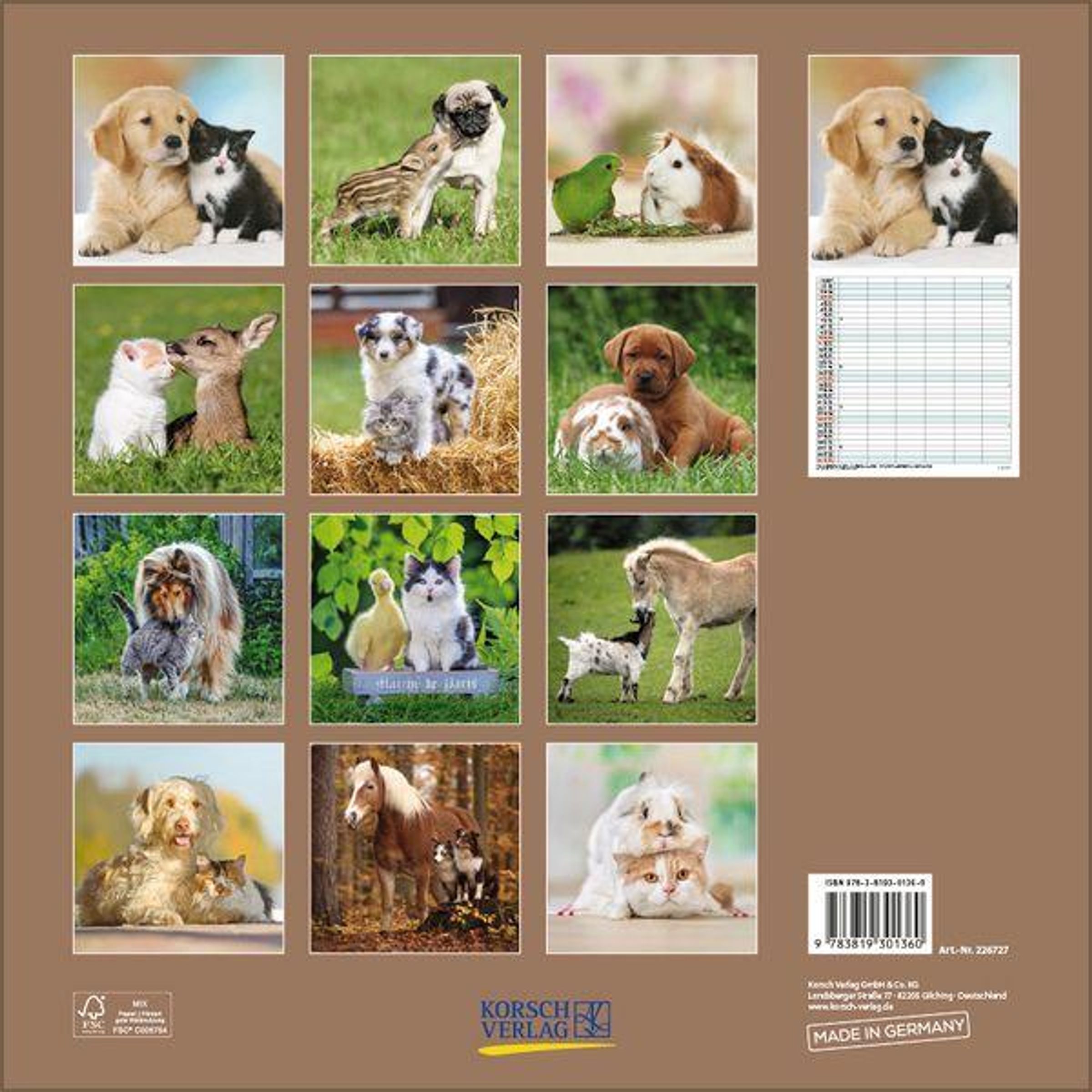 Tierische Freunde sind die Hauptdarsteller in diesem praktischen Familienplaner, der Groß und Klein gleichermaßen begeistert.