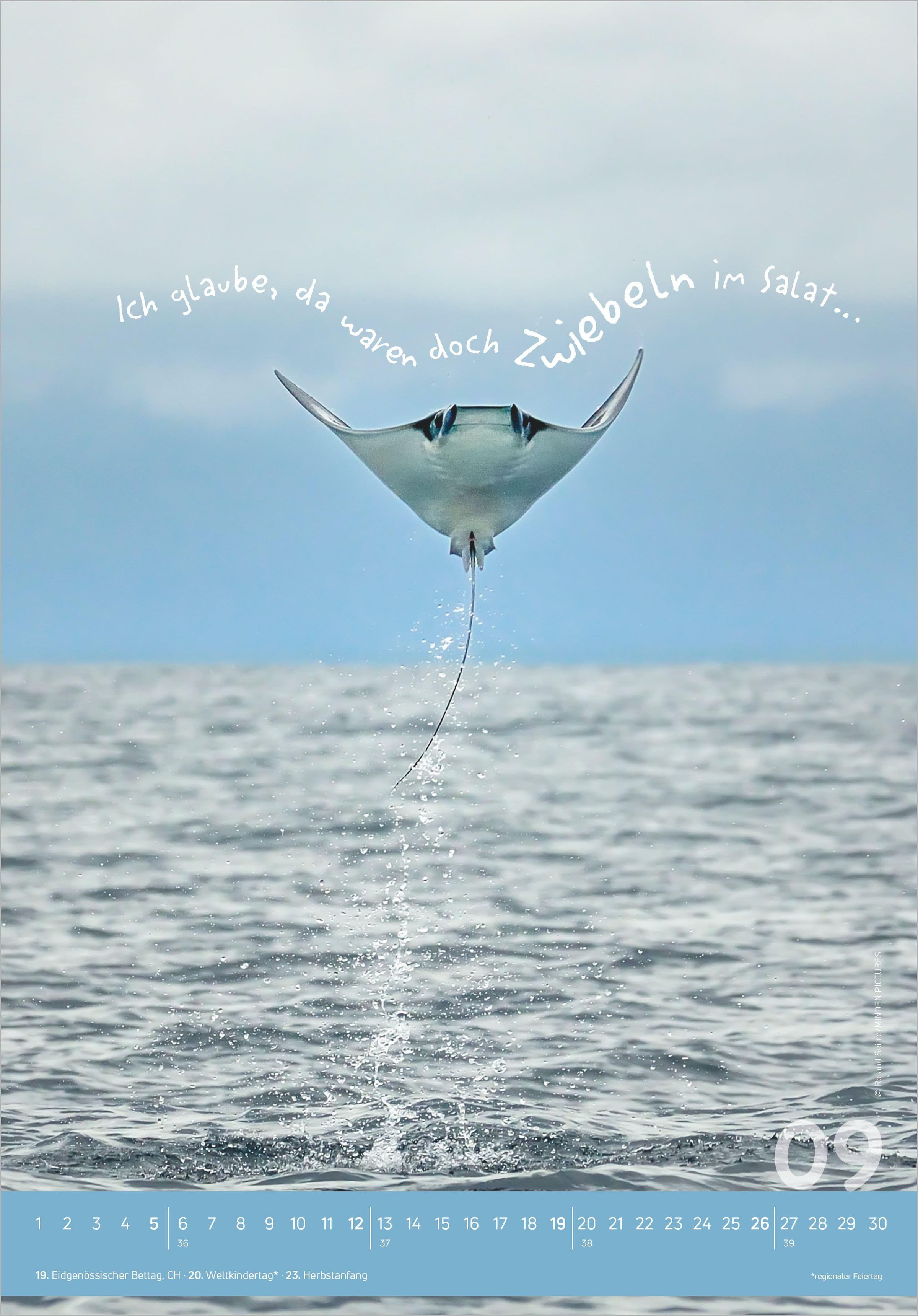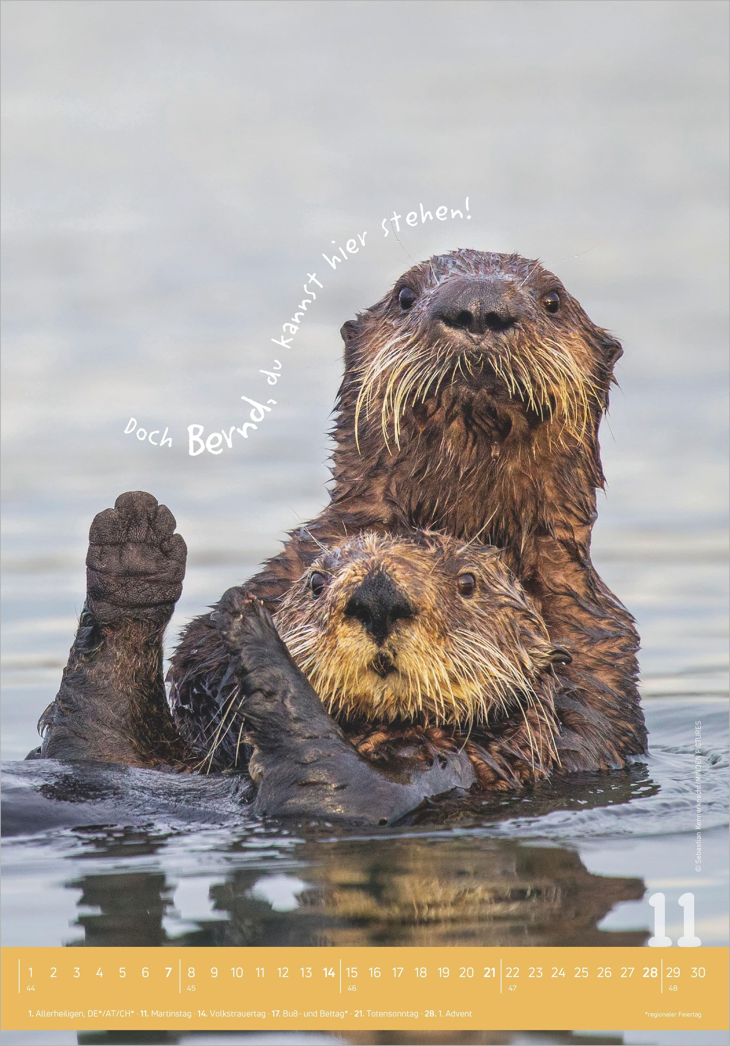 "TIERISCH COOL! 2027. Ja, ich seh dich. Leider." Ein Nilpferd ragt aus dem Wasser, umgeben von ruhigem Grün., Kalender