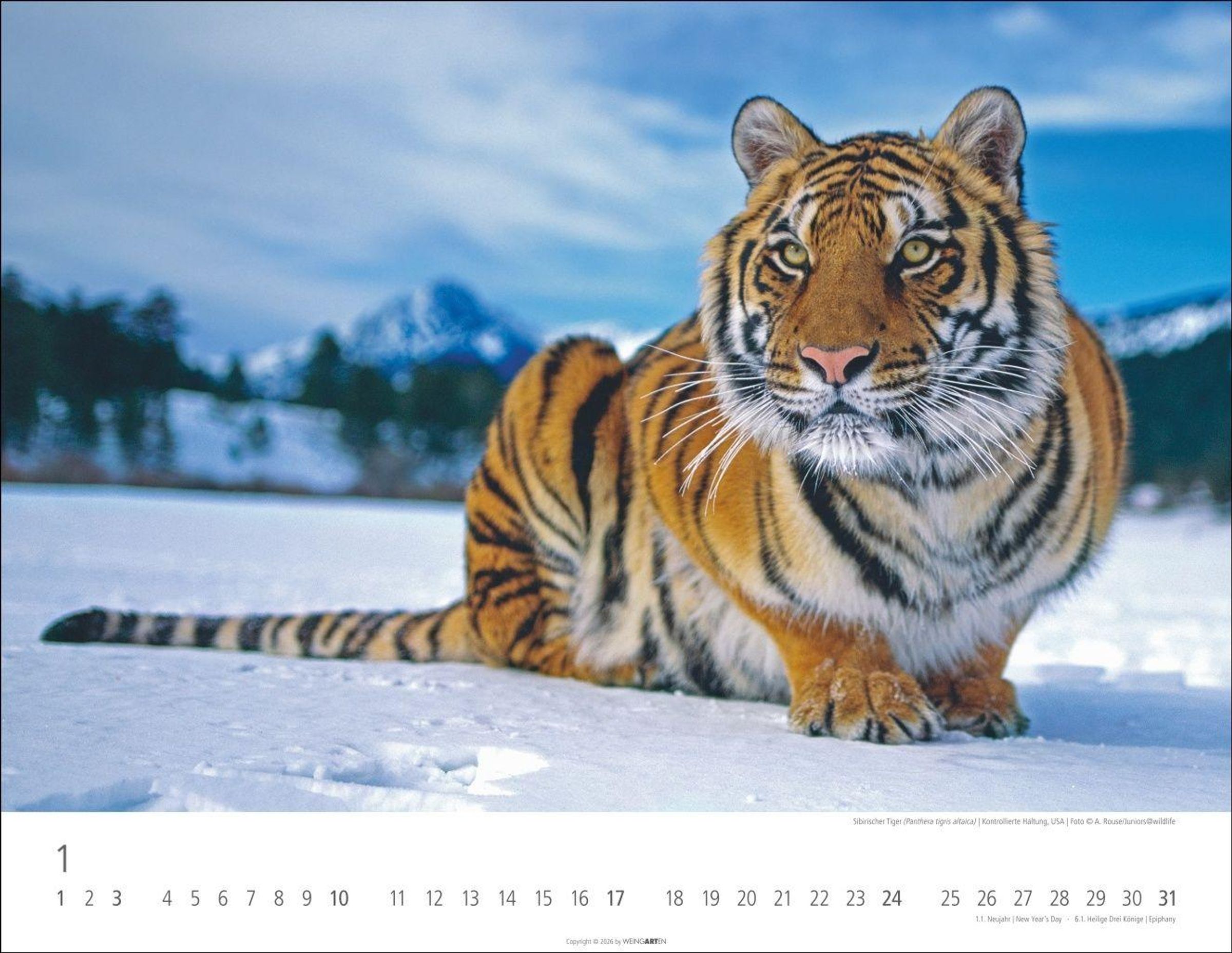 Naturfotografie at its best: Sibirische Tiger, Sumatratiger und Königstiger in einem dekorativen Kalender im Querformat