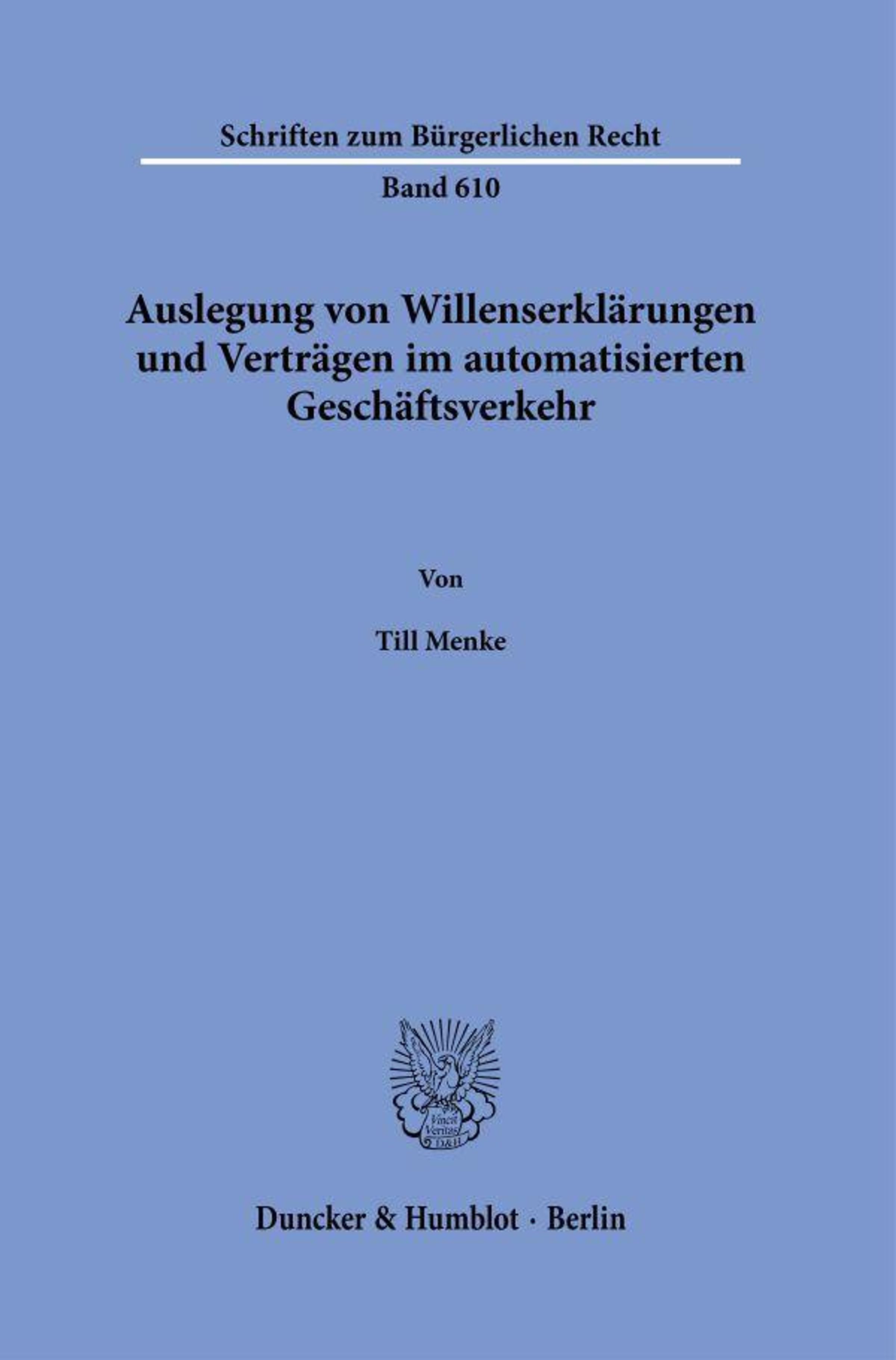 Till Menke: Auslegung von Willenserklärungen und Verträgen im automatisierten Geschäftsverkehr, Gebunden