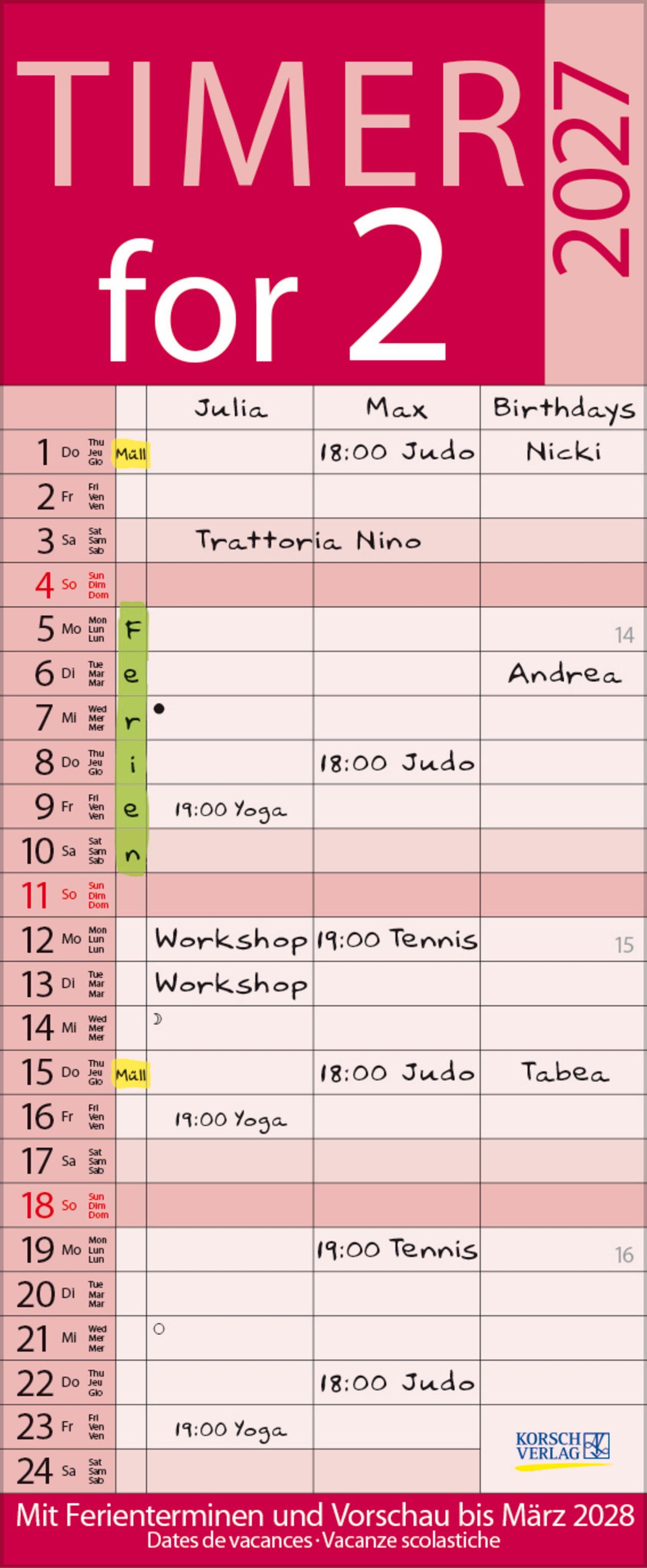 - Familienplaner mit 3 breiten Spalten. Hochwertiger Familienkalender mit Ferienterminen, Vorschau bis März 2027 und nützlichen Zusatzinformationen.
