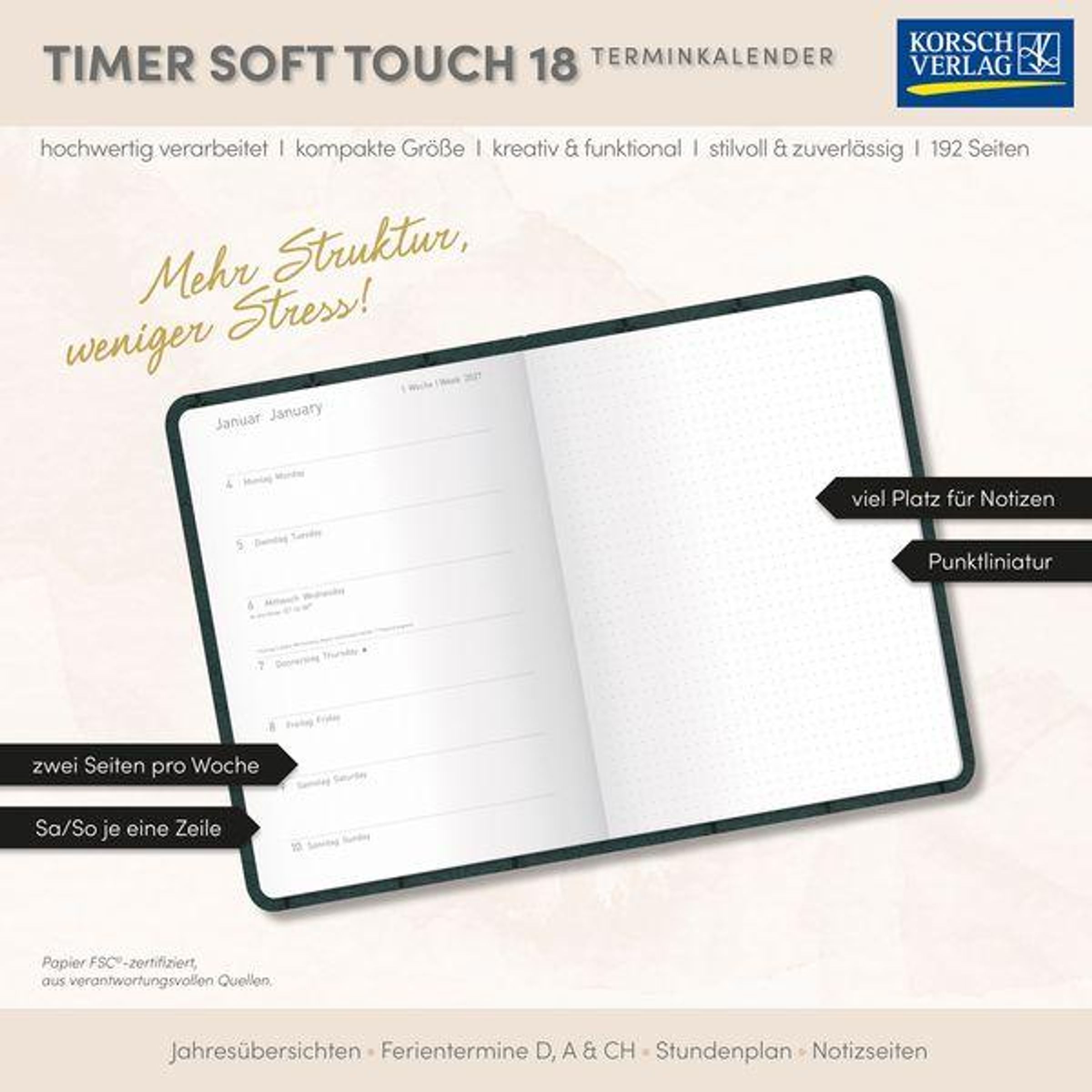 Timer Soft Touch 18 Monate dunkelgrün 2027/2028, Kunststoff