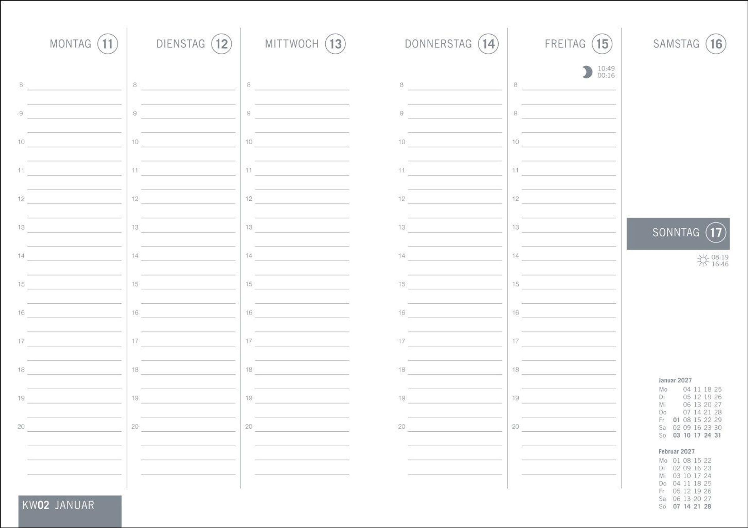 Edle Timer im frischen Design: Taschenplaner 2027 im Format 11 x 15 cm mit einer Doppelseite Platz pro Woche und Monatsübersichten