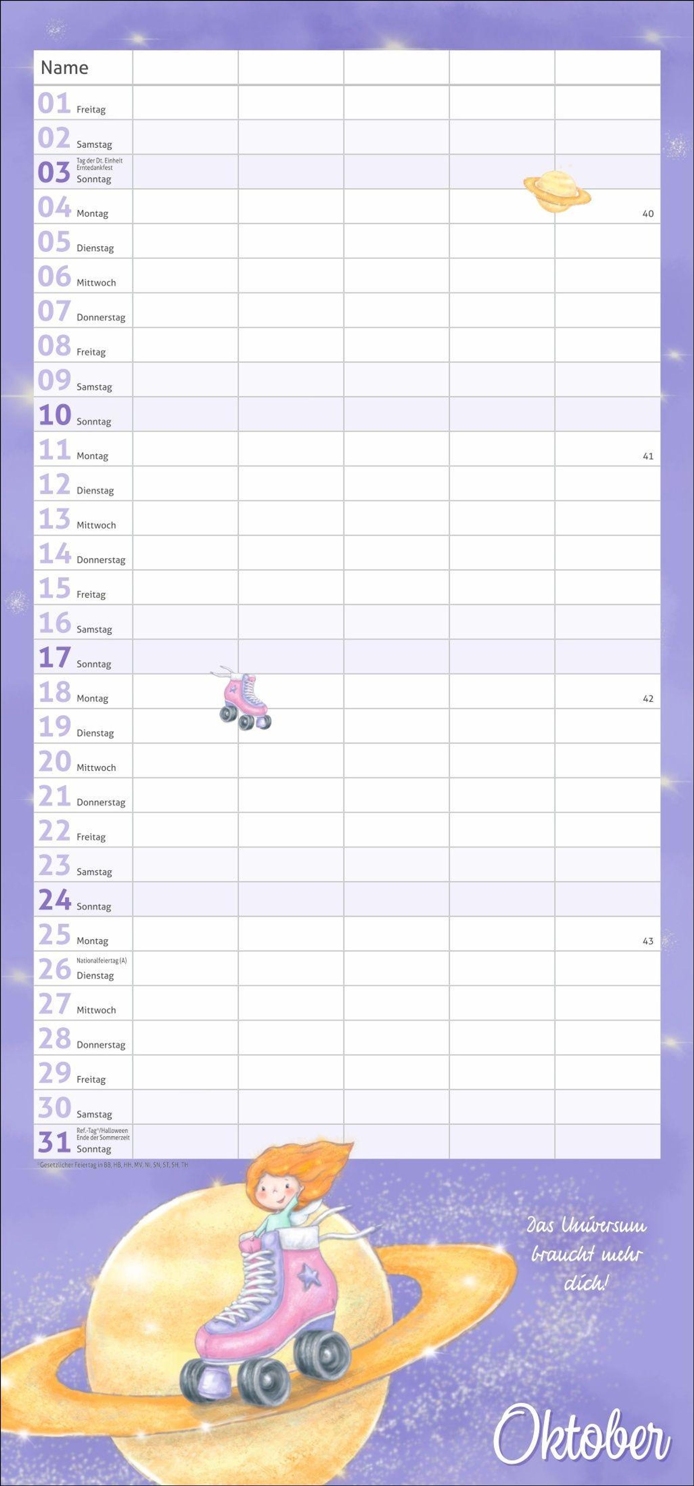 Für alle, die richtig was vorhaben - unser erfolgreiches Konzept für Familienkalender: 5 Spalten mit ausreichend Platz zum Austoben, im übersichtlichen 21 x 45 cm Format