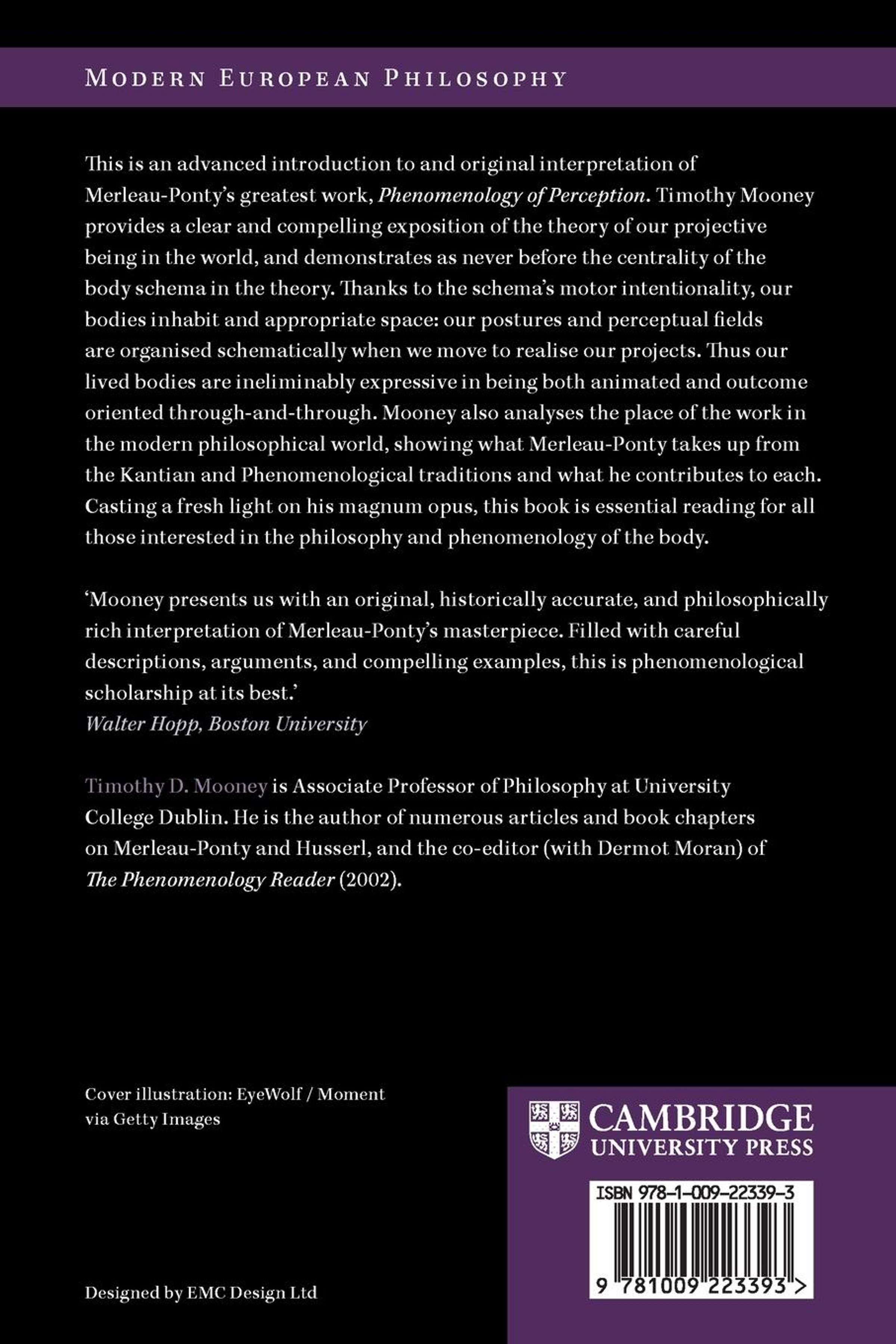 This is an advanced introduction to and original interpretation of Merleau-Ponty's greatest work, Phenomenology of Perception. Timothy Mooney provides a clear and compelling exposition of the theory of our projective being in the world, and demonstrates as never before the centrality of the body schema in the theory. Thanks to the schema's motor intentionality our bodies inhabit and appropriate space: our postures and perceptual fields are organised schematically when we move to realise our projects. Thus our lived bodies are ineliminably expressive in being both animated and outcome oriented through-and-through. Mooney also analyses the place of the work in the modern philosophical world, showing what Merleau-Ponty takes up from the Kantian and Phenomenological traditions and what he contributes to each. Casting a fresh light on his magnum opus, this book is essential reading for all those interested in the philosophy and phenomenology of the body.