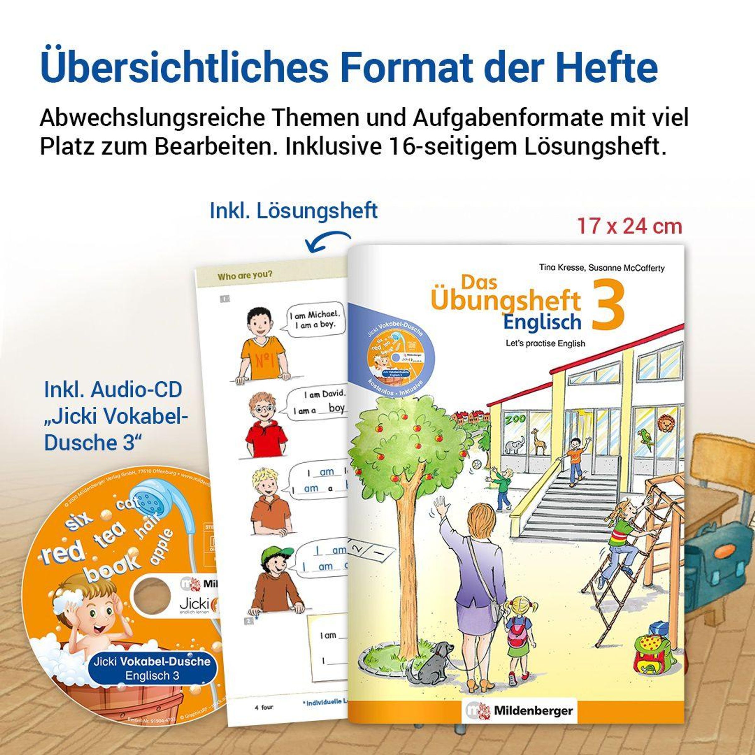 Die Übungshefte Englisch trainieren nach dem bewährten Konzept der Reihe "Das Übungsheft": In kleinen Trainingseinheiten lernen, üben und wiederholen die Kinder den relevanten Wortschatz der Grundschule - mit kostenlosen Hörangeboten online. Die klare Gestaltung und das motivierende Stickerbelohnungssystem unterstützen den Lernerfolg. Die beiliegenden Lösungshefte ermöglichen die Selbstkontrolle.