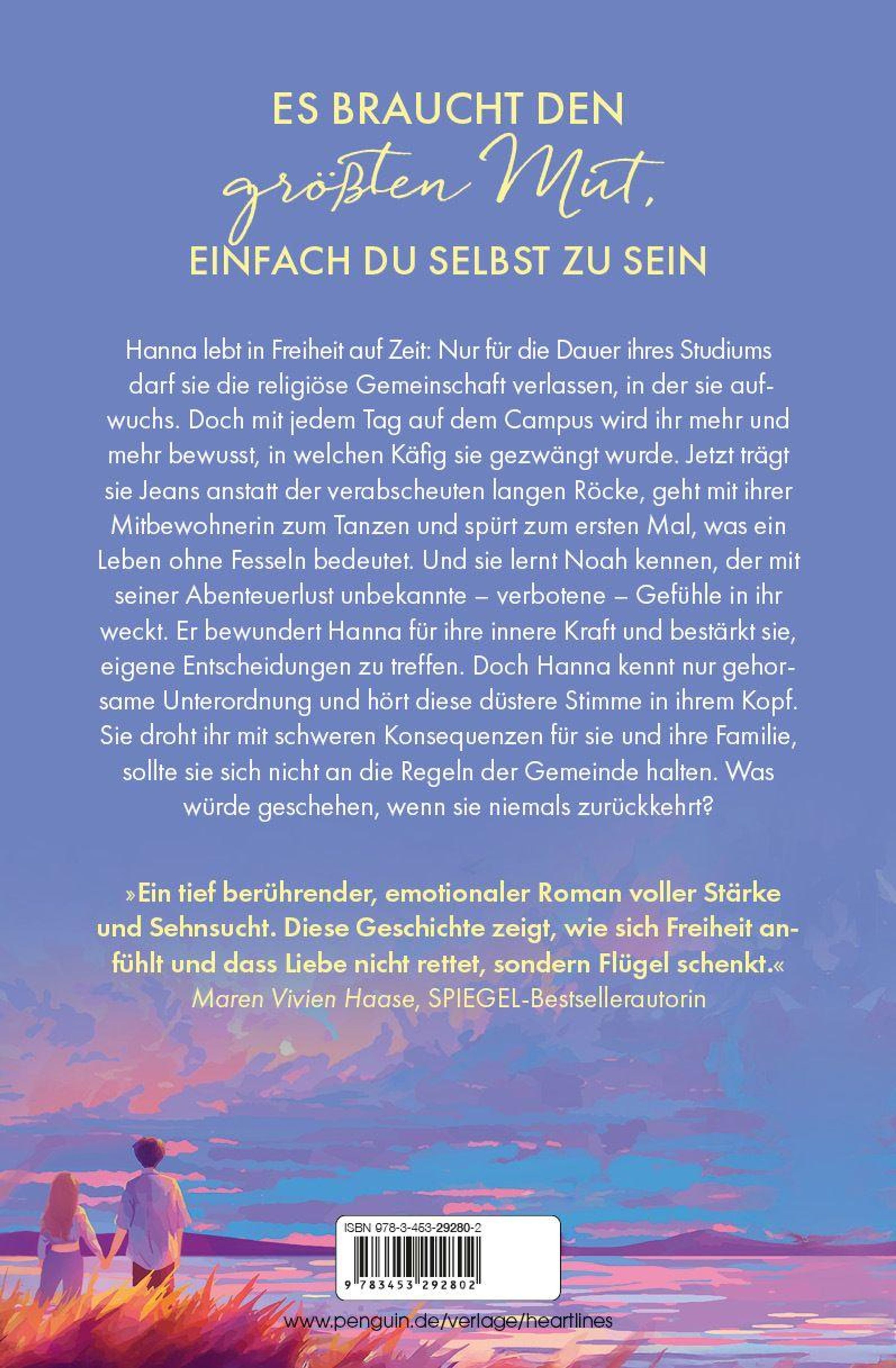 Hanna lebt in Freiheit auf Zeit: Nur für die Dauer ihres Studiums darf sie die religiöse Gemeinschaft verlassen, in der sie aufwuchs. Doch mit jedem Tag auf dem Campus wird ihr mehr bewusst, in welchen Käfig sie gezwängt wurde. Jetzt trägt sie Jeans anstatt der verabscheuten langen Röcke, geht mit ihrer Mitbewohnerin zum Tanzen und spürt zum ersten Mal, was ein Leben ohne Fesseln bedeutet. Und sie lernt Noah kennen, der mit seiner Abenteuerlust unbekannte - verbotene - Gefühle in ihr weckt. Er bewundert Hanna für ihre innere Kraft und bestärkt sie, eigene Entscheidungen zu treffen. Doch Hanna kennt nur gehorsame Unterordnung und hört diese düstere Stimme in ihrem Kopf: Sie droht ihr mit schweren Konsequenzen für sie und ihre Familie, sollte sie sich nicht an die Regeln der Gemeinde halten. Was würde geschehen, wenn sie niemals zurückkehrt?