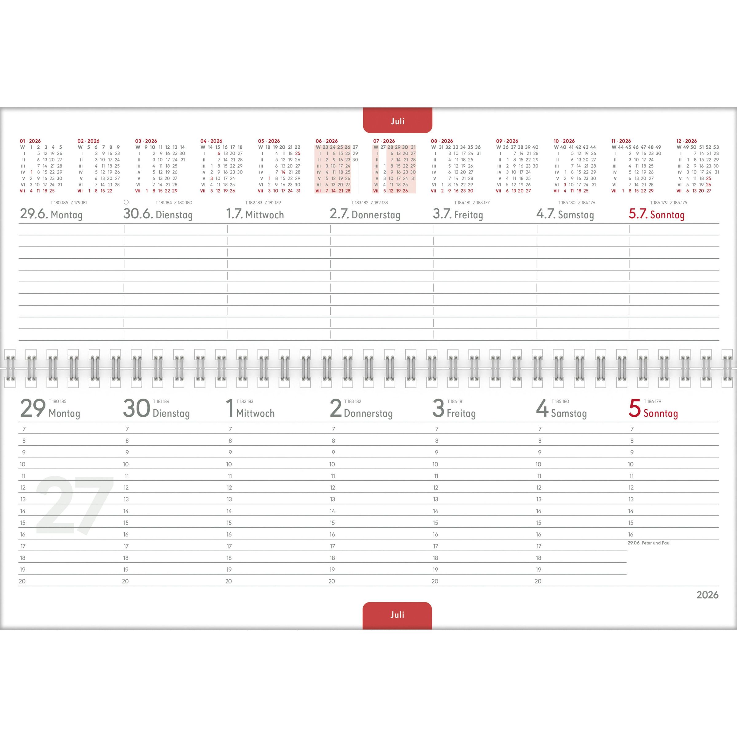 Tisch-Querkalender Style Marmor 2026 - Büro-Planer 29,7x10,5 cm - Tisch-Kalender - 1 Woche 2 Seiten - Ringbindung - Zettler