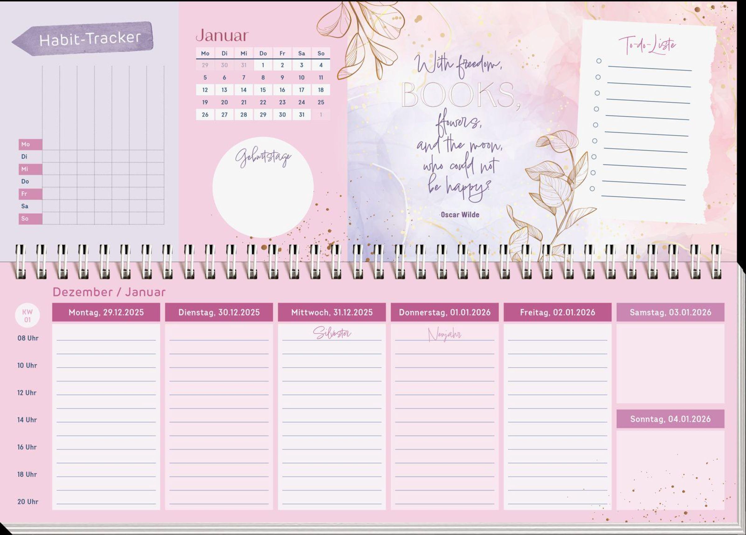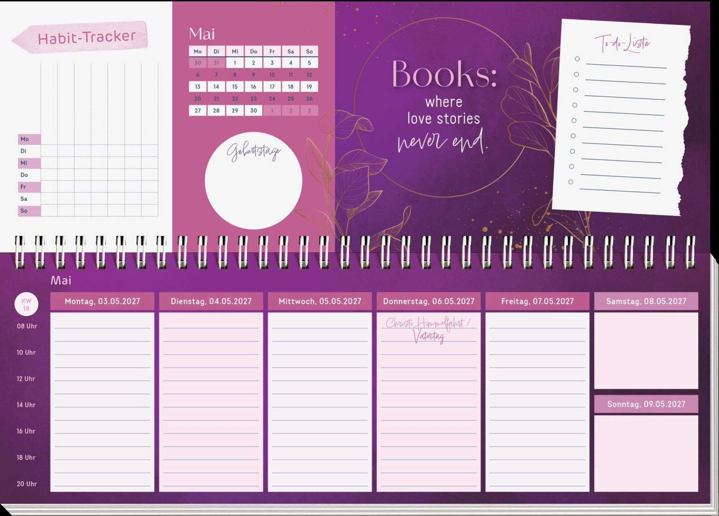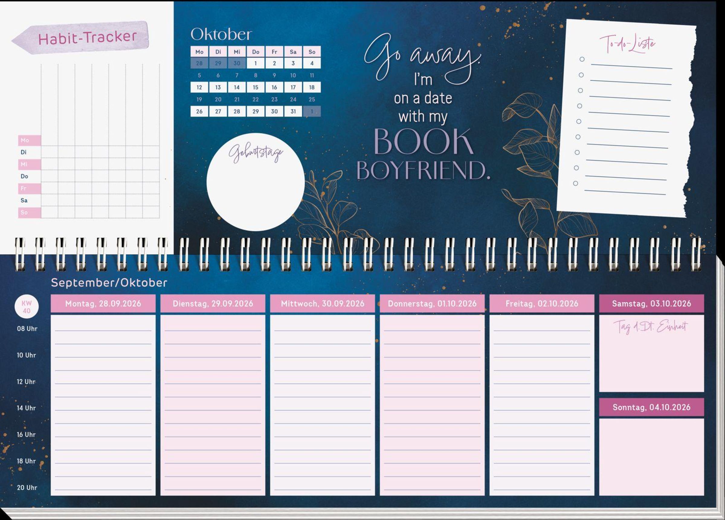 • Schreibtischplaner, Wochenplaner mit Spiralbindung für Romance-Leserinnen und Booklover