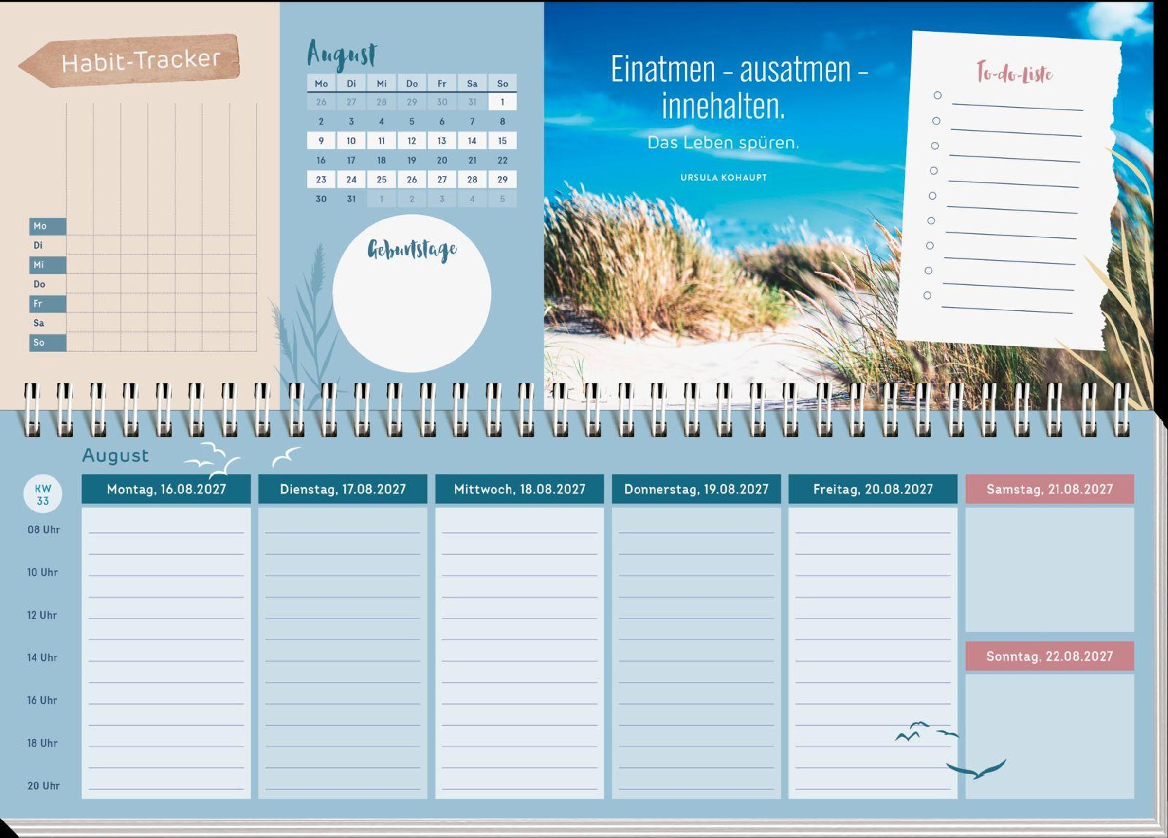 - Terminkalender/-planer 2027 Meer mit 64 Seiten (Maße: 29, 7 x 11, 5 cm) und Spiralbindung für einfaches Umblättern und flaches Auflegen auf dem Schreibtisch