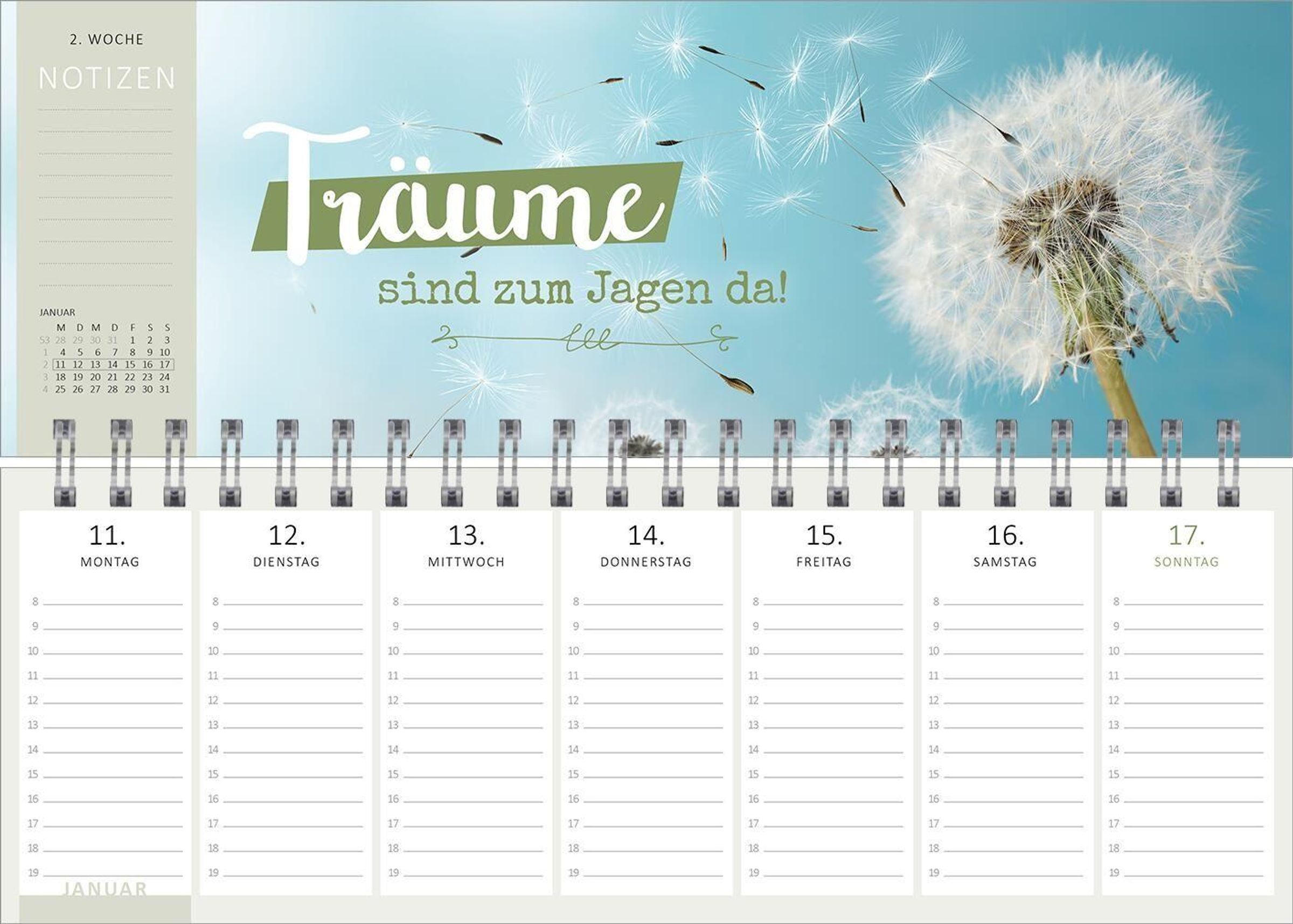 - Motiviert ins neue Jahr starten: Schöner Kalender mit Spiralbindung (29, 7 x 11, 5 cm) und aufklappbarem Rückenkarton, der das Motiv dekorativ hervorhebt