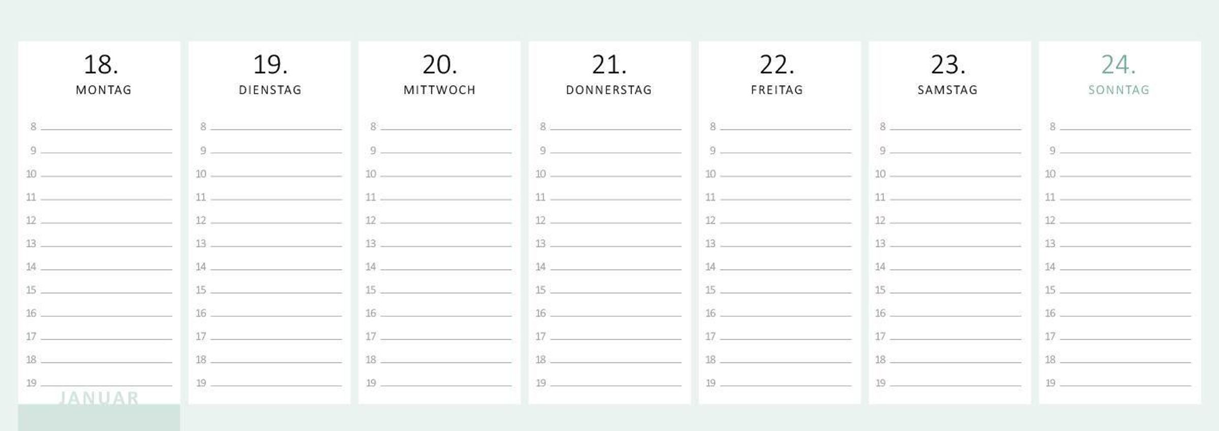 - Alles auf einen Blick: Mit Jahresübersichten, Schulferienterminen und viel Platz zum Eintragen. Motivseite ist aufgeklappt, Kalendarium liegt auf der Tischfläche auf, so ist alles bequem und schnell notiert