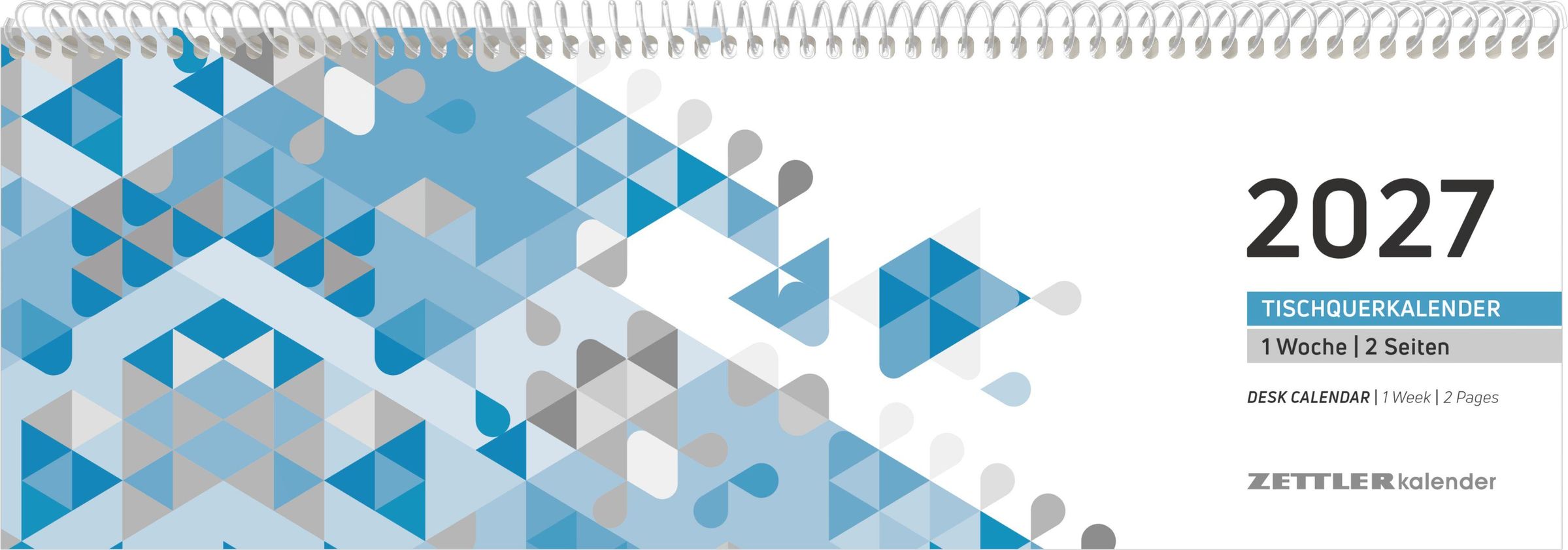 Der Zettler Tischquerkalender Blau 2027 ist der praktische Wochenplaner für Büro, Schule und Homeoffice. Im kompakten Querformat sorgt er für Übersicht, klare Struktur und bietet viel Platz für tägliche Termine und Notizen.
