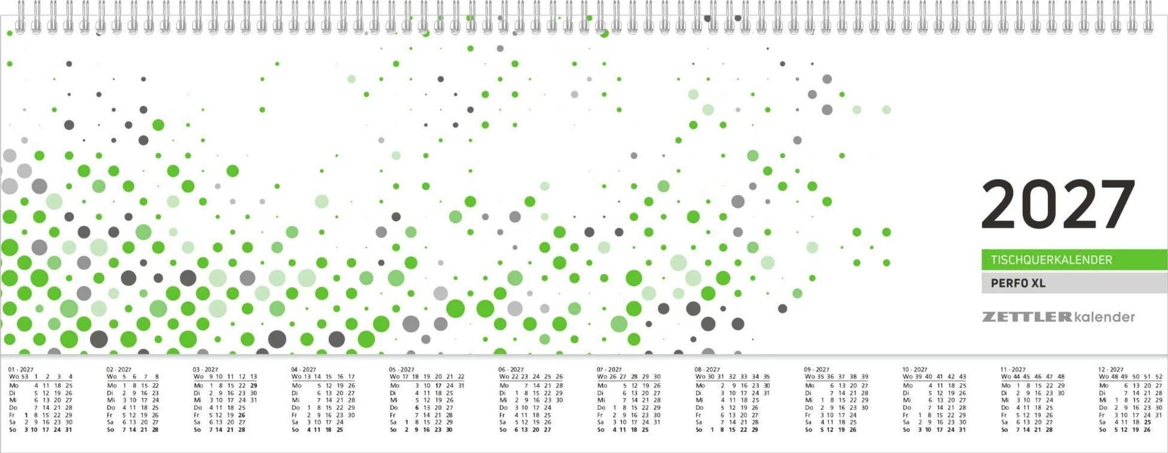 Tischquerkalender 1W/2S verl. Rückw. PERFO XL grün 2027 (Kalender)