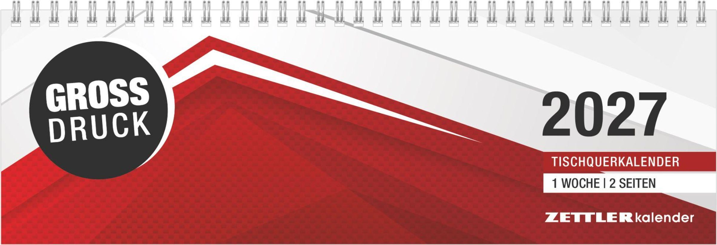Der Tischquerkalender GROSSDRUCK 2027 von Zettler überzeugt durch extra große Schrift und ein klar strukturiertes, schlichtes Kalendarium für maximale Übersicht und beste Lesbarkeit. Auf zwei Seiten pro Woche bietet er viel Platz für Termine und Notizen. Das praktische Querformat macht ihn zum idealen Begleiter auf Schreibtisch oder Sideboard -- funktional, aufgeräumt und komfortabel in der täglichen Nutzung.