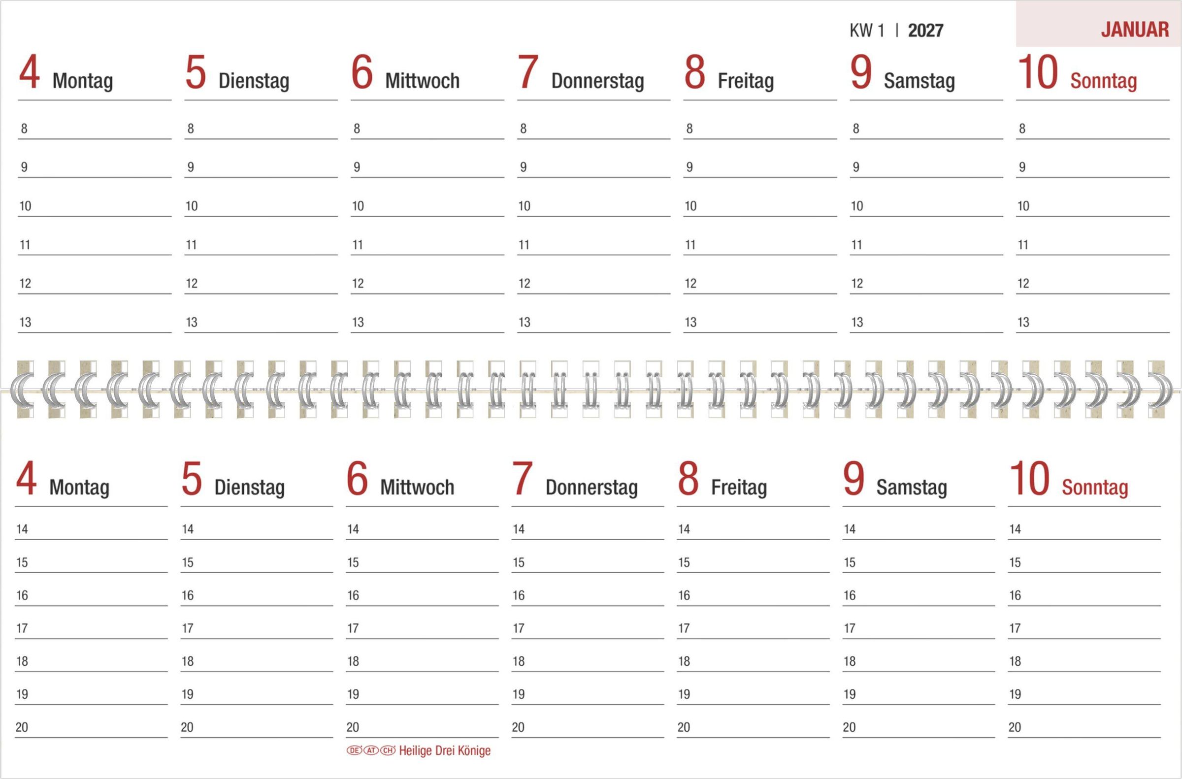 2 Seiten pro Woche: Viel Platz für Termine und persönliche Notizen.