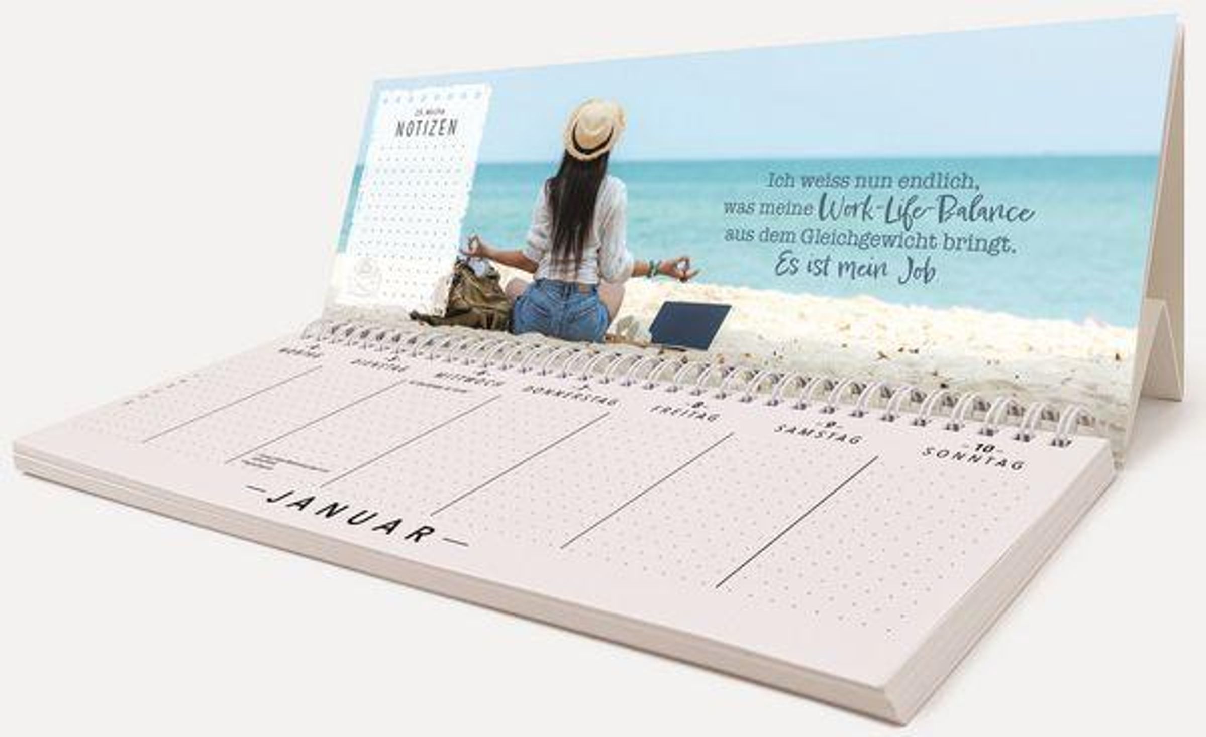 - 1 Woche 2 Seiten; Aufstellbarer Tischkalender für gute Laune am Schreibtisch und Platz für Notizen; Format: 29,8 x 10,5 cm