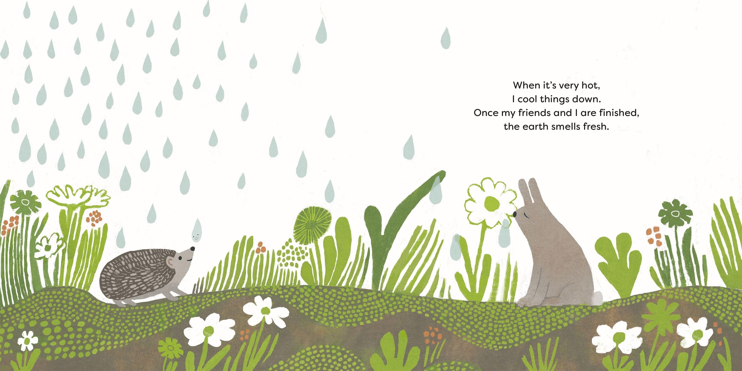 This book provides an energetic overview of the water cycle that is equal parts delightful and informative. Whether assembling to create streams, rivers, and oceans or falling through the sky during thunder storms, there's endless excitement to be found in all of the different ways water interacts with our environment.