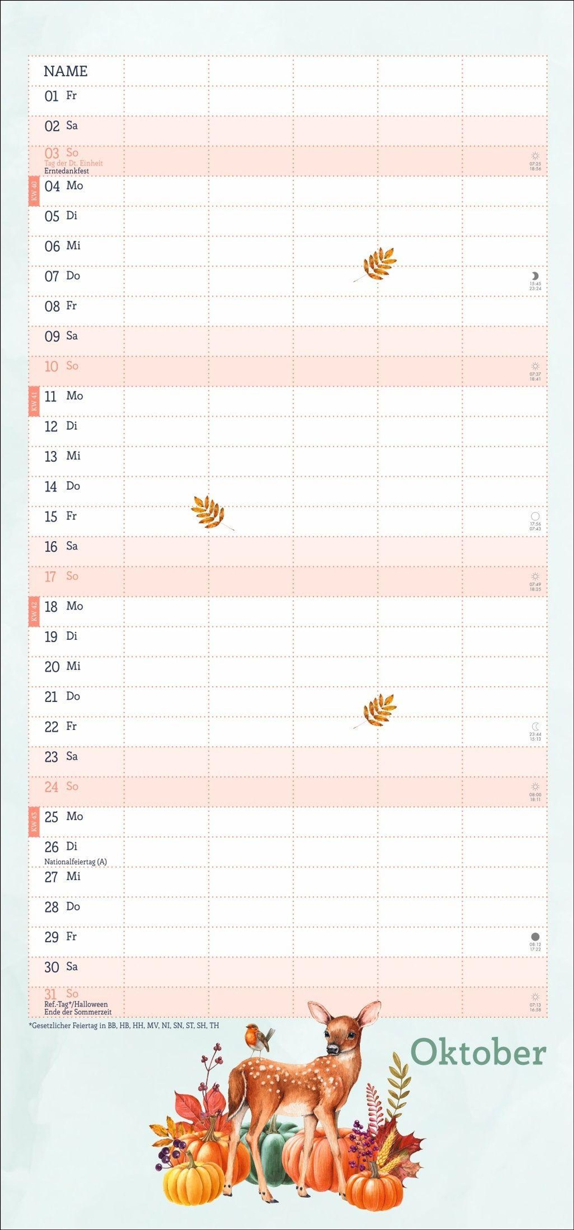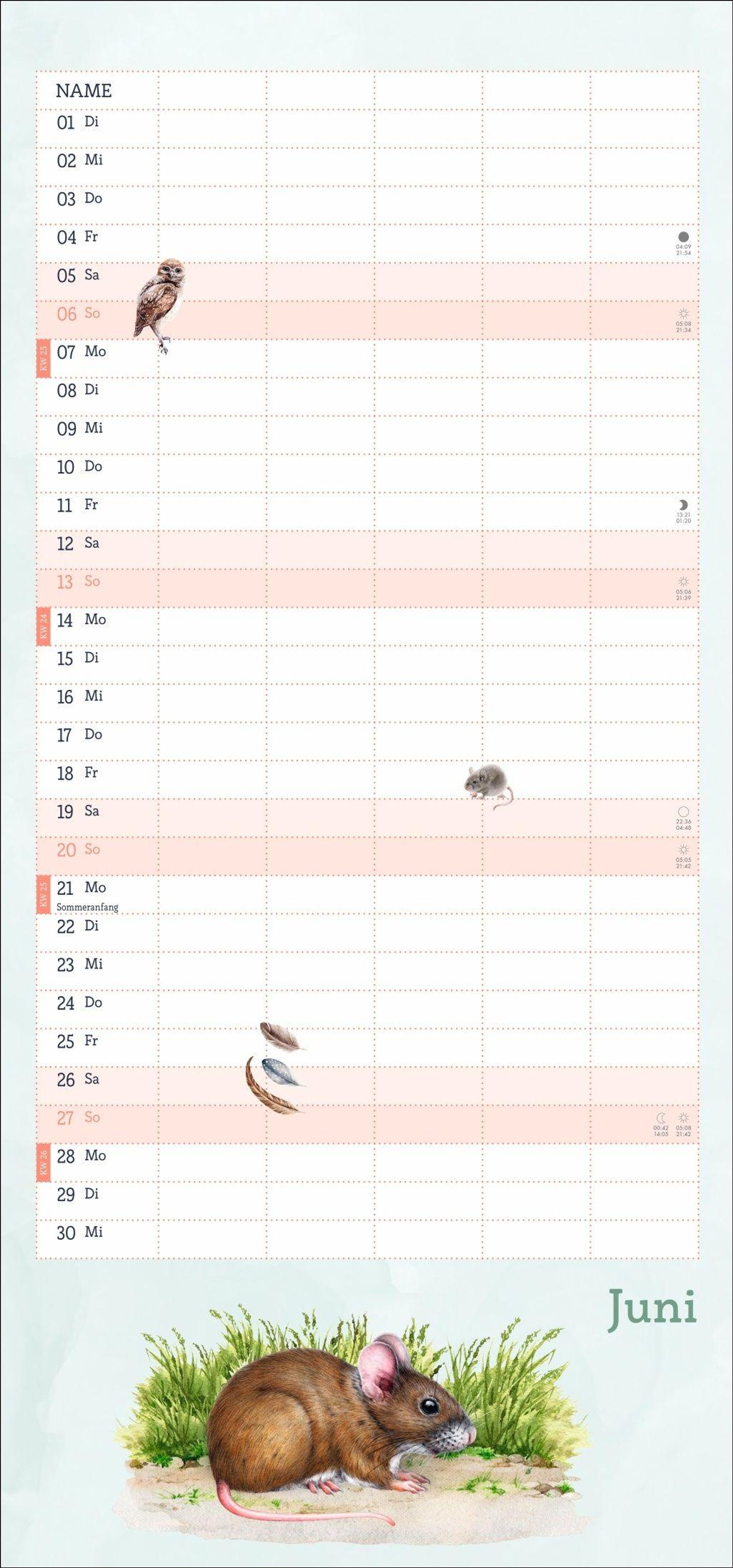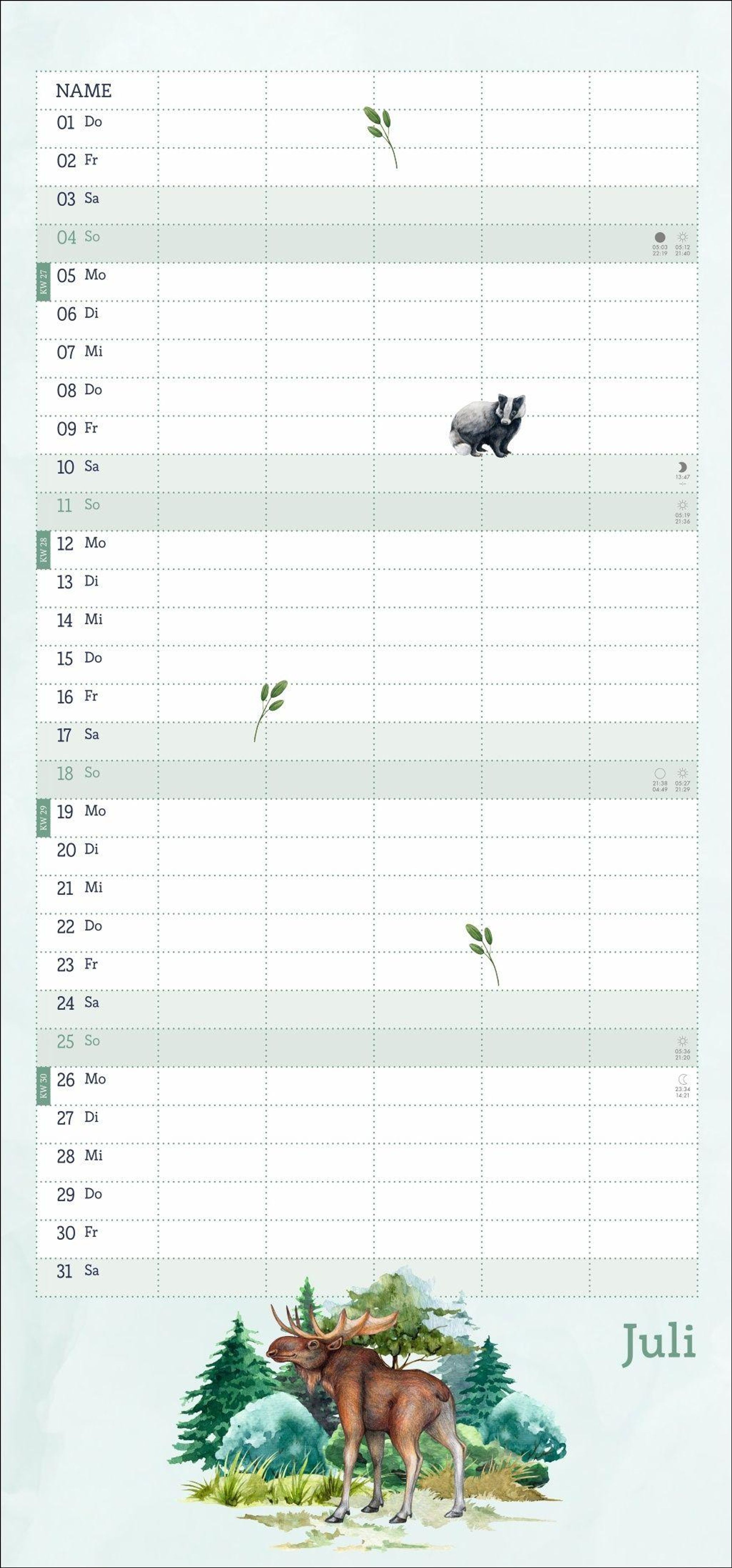 Ein Blick in die Fauna des Waldes im Wandel der Jahreszeiten: Terminkalender im kompakten 21 x 45 cm Hochformat