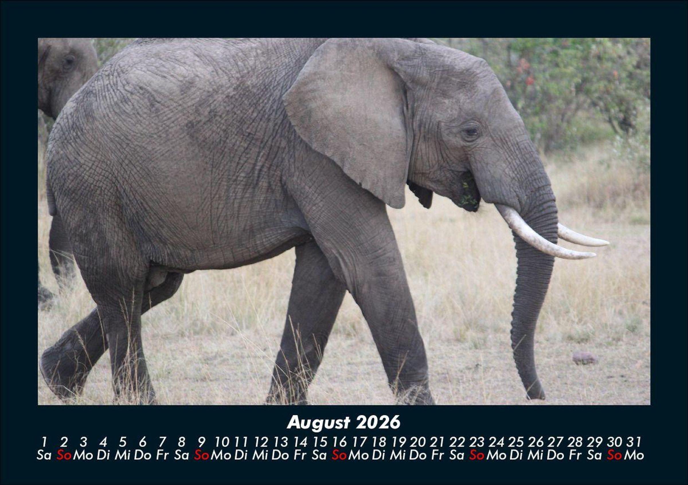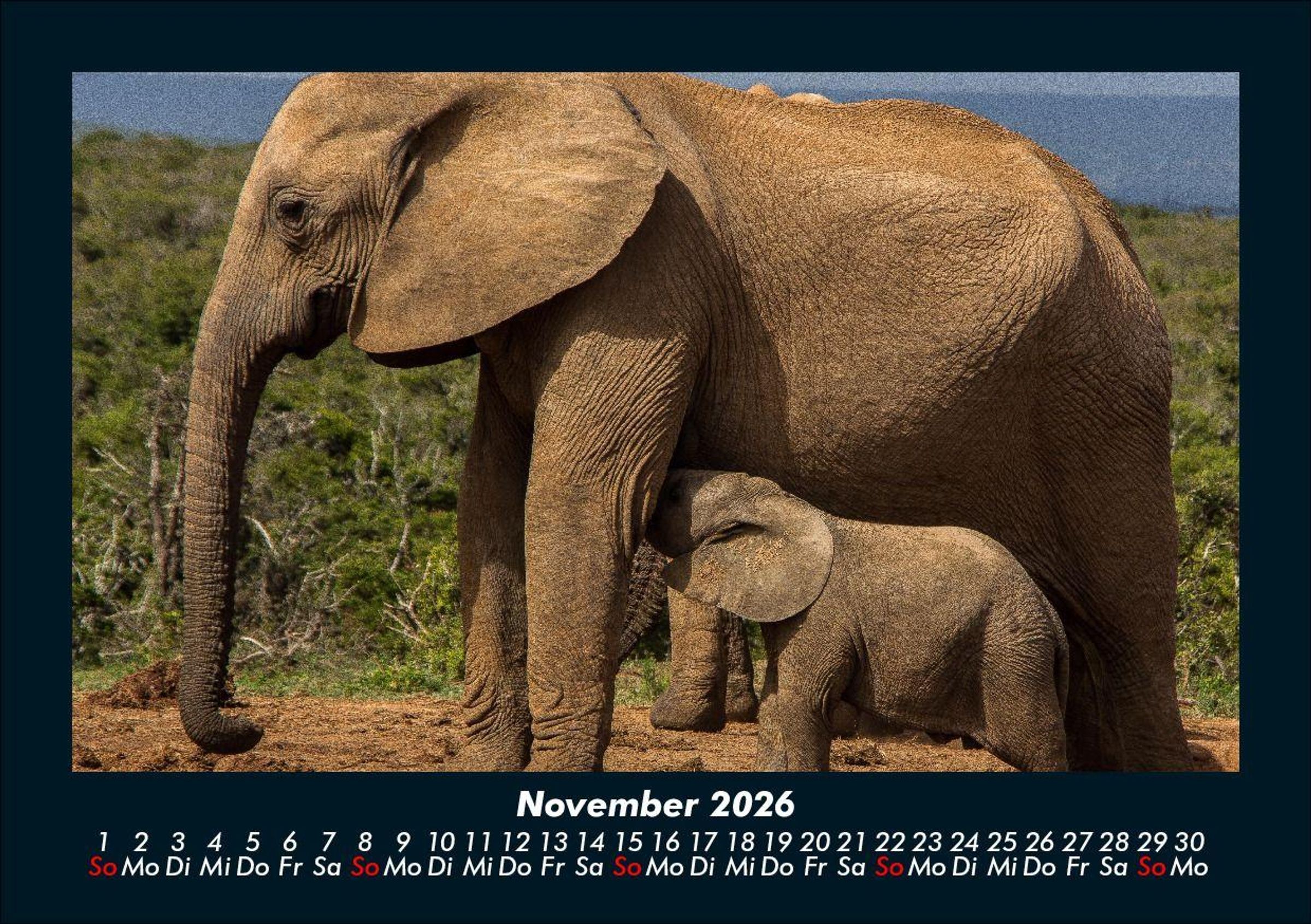 Der Elefantenkalender 2026 Motivkalender DIN A5 Der Kalender für Elefanten-Liebhaber zeigt Elefanten aus Afrika und Asien. Gruppen, Einzeltiere und Baby-Elefanten in wunderschöner Landschaft. Abwechslungsreich führt dieser Kalender durch ein Jahr der großen Dickhäuter. Vero-Kalender erhalten Sie mit Motiven aus den verschiedensten Themenbereichen wie Natur, Blumen und Landschaft, Tierwelt, Architektur, Reise und Urlaub, Technik, Automobil und Eisenbahn, Emotionen, Sport und Musik. Gedruckt werden die Monats-Kalender aus dem Vero Verlag auf hochwertigem Kalenderbogen in Premium-Qualität und verschiedenen Größen. Die Vielfältigkeit der Motive unserer Foto-Kalender ist dank der Zusammenarbeit mit kreativen Fotografen möglich.