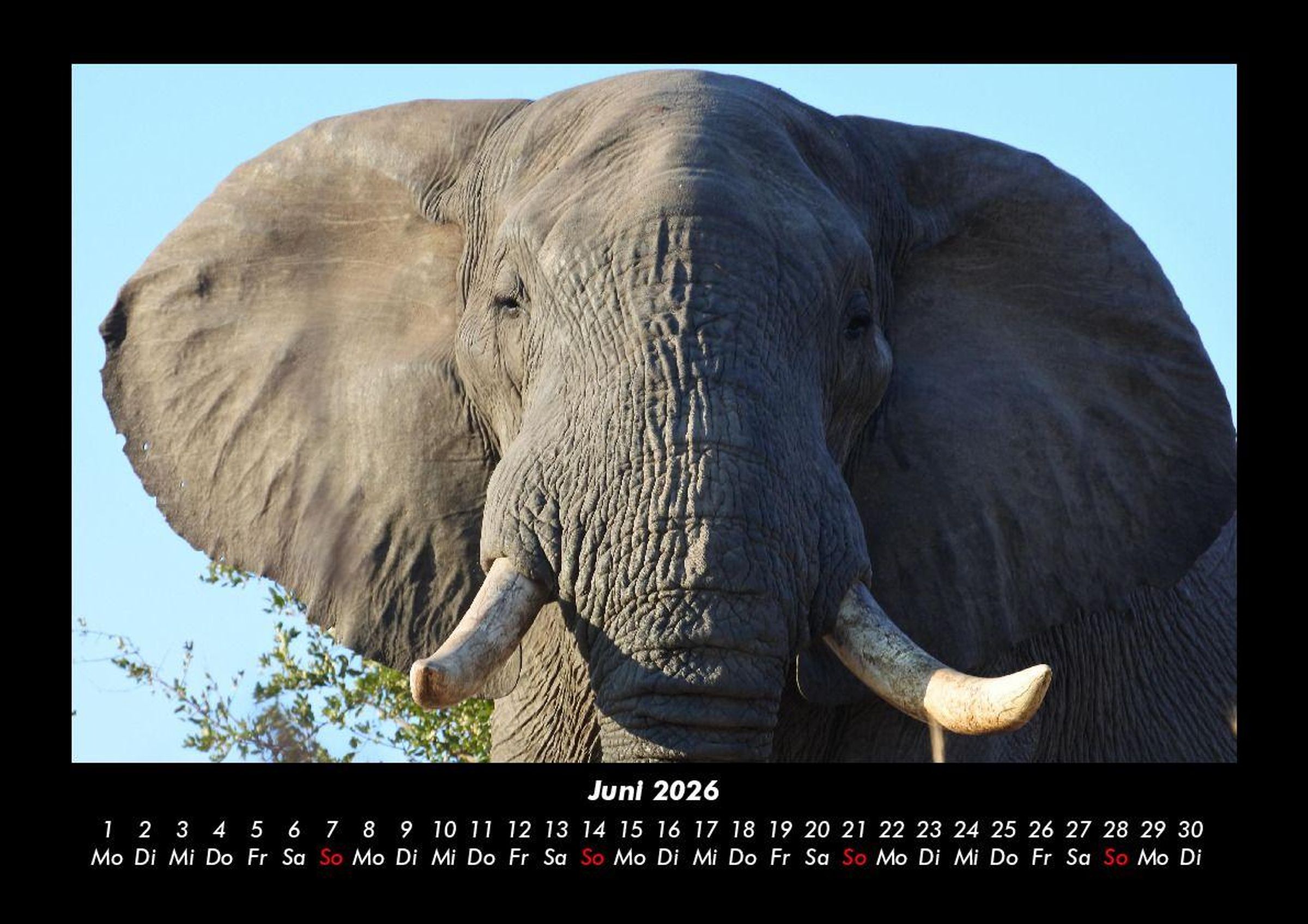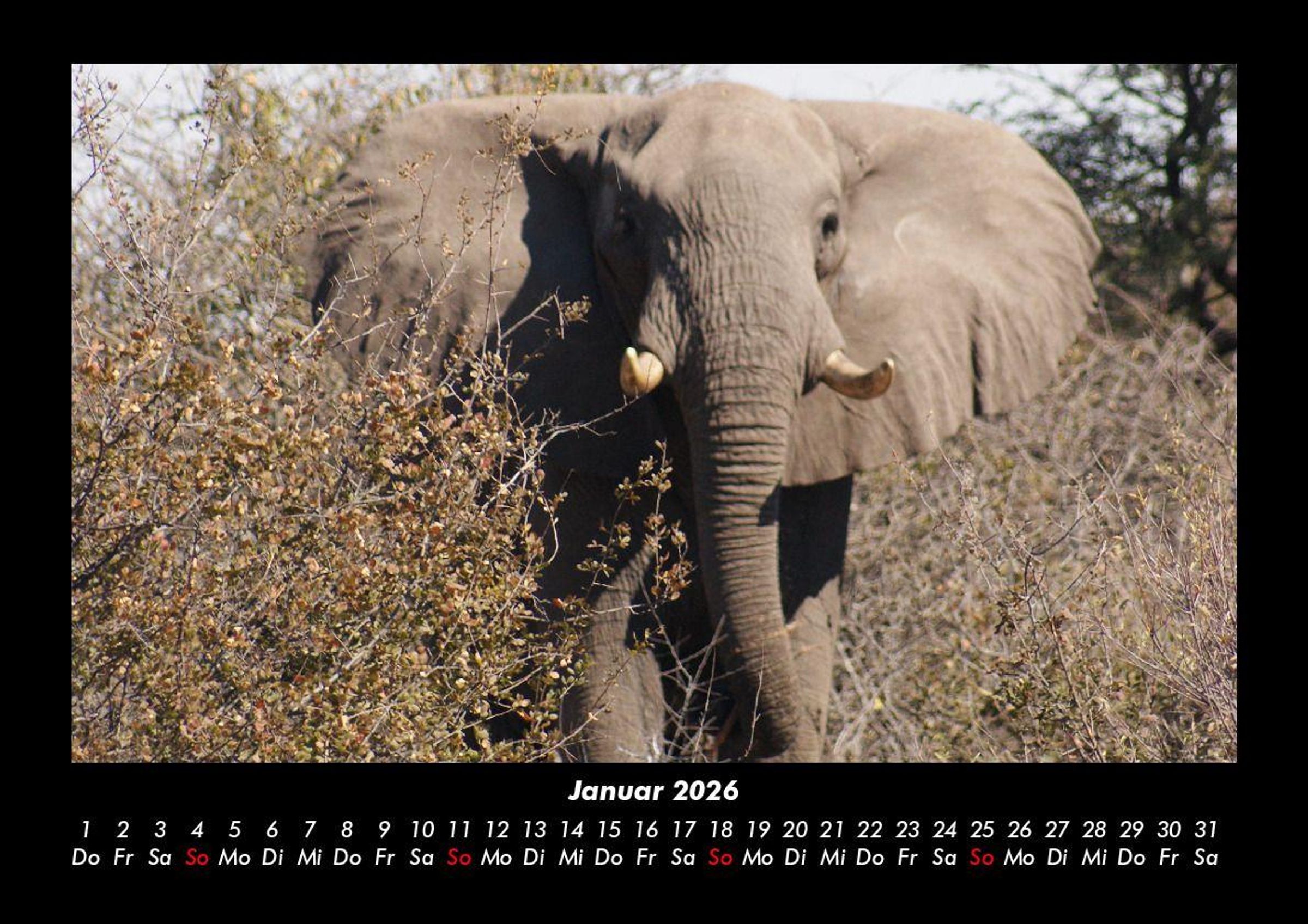 Elefanten - Die sanften Riesen Afrikas 2026 Motivkalender DIN A3 Vero-Kalender erhalten Sie mit Motiven aus den verschiedensten Themenbereichen wie Natur, Blumen und Landschaft, Tierwelt, Architektur, Reise und Urlaub, Technik, Automobil und Eisenbahn, Emotionen, Sport und Musik. Gedruckt werden die Monats-Kalender aus dem Vero Verlag auf hochwertigem Kalenderbogen in Premium-Qualität und verschiedenen Größen. Die Vielfältigkeit der Motive unserer Foto-Kalender ist dank der Zusammenarbeit mit kreativen Fotografen möglich.