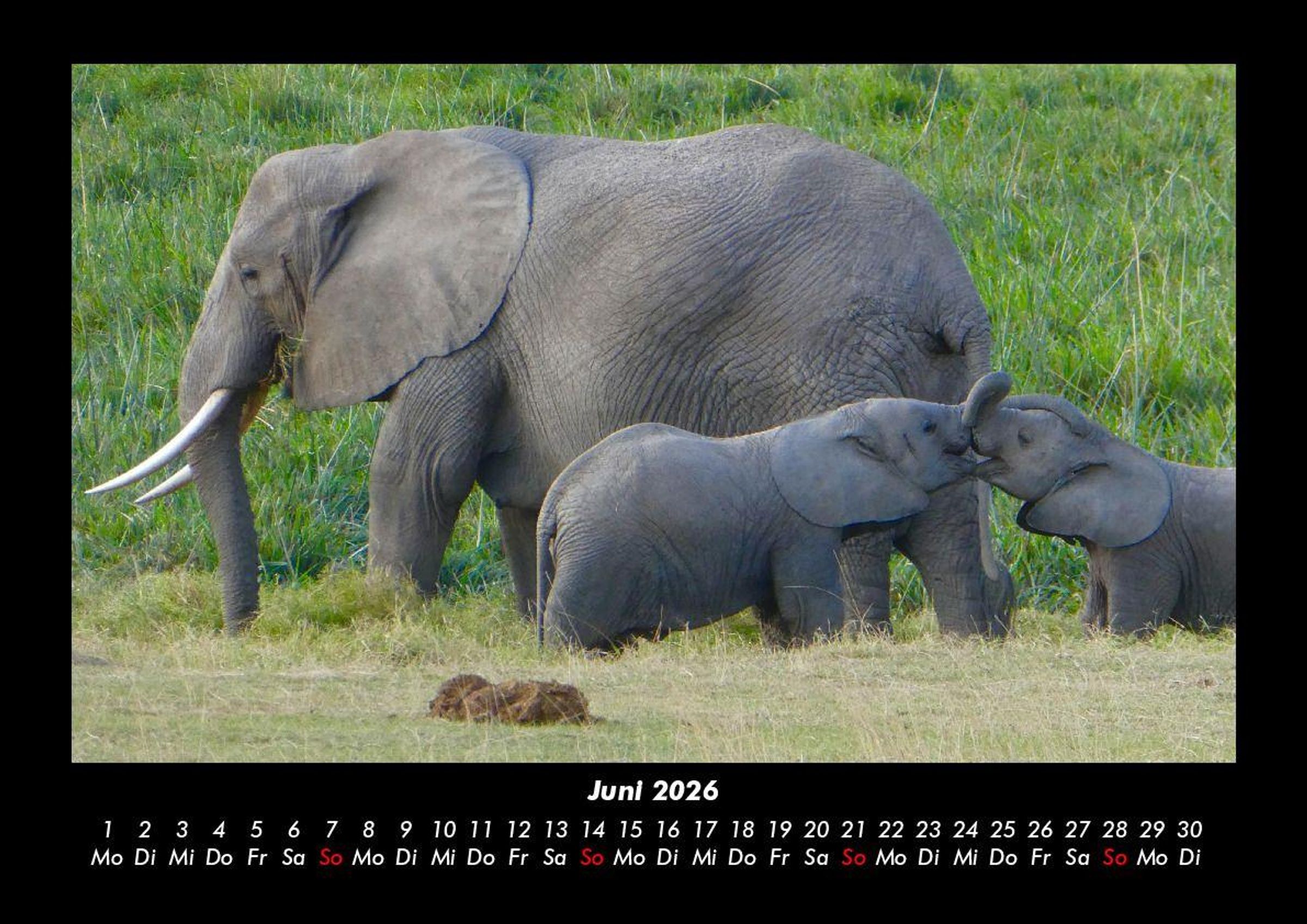 Elefanten - Die sanften Riesen Afrikas 2026 Motivkalender DIN A3 Vero-Kalender erhalten Sie mit Motiven aus den verschiedensten Themenbereichen wie Natur, Blumen und Landschaft, Tierwelt, Architektur, Reise und Urlaub, Technik, Automobil und Eisenbahn, Emotionen, Sport und Musik. Gedruckt werden die Monats-Kalender aus dem Vero Verlag auf hochwertigem Kalenderbogen in Premium-Qualität und verschiedenen Größen. Die Vielfältigkeit der Motive unserer Foto-Kalender ist dank der Zusammenarbeit mit kreativen Fotografen möglich.