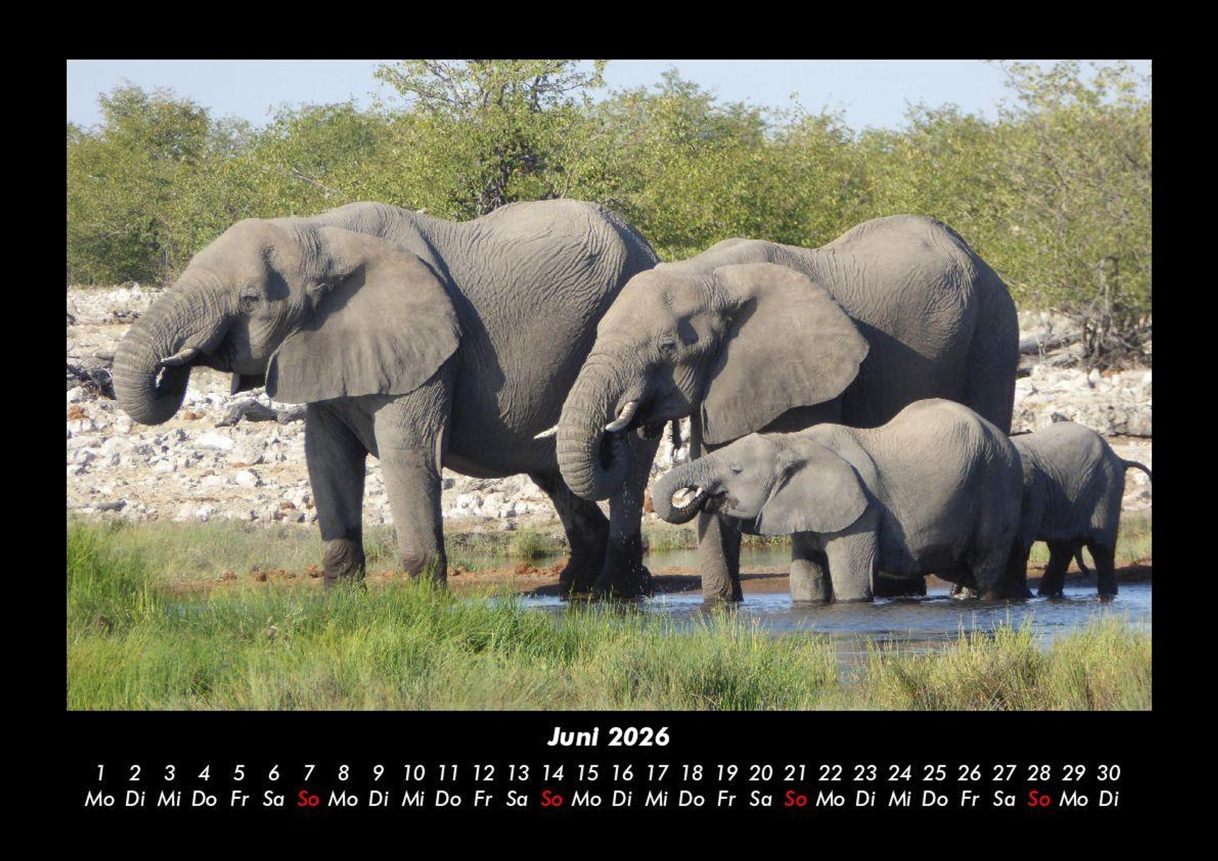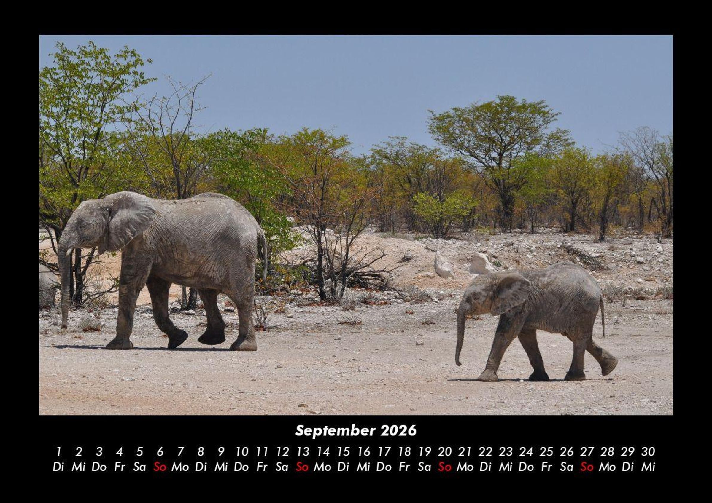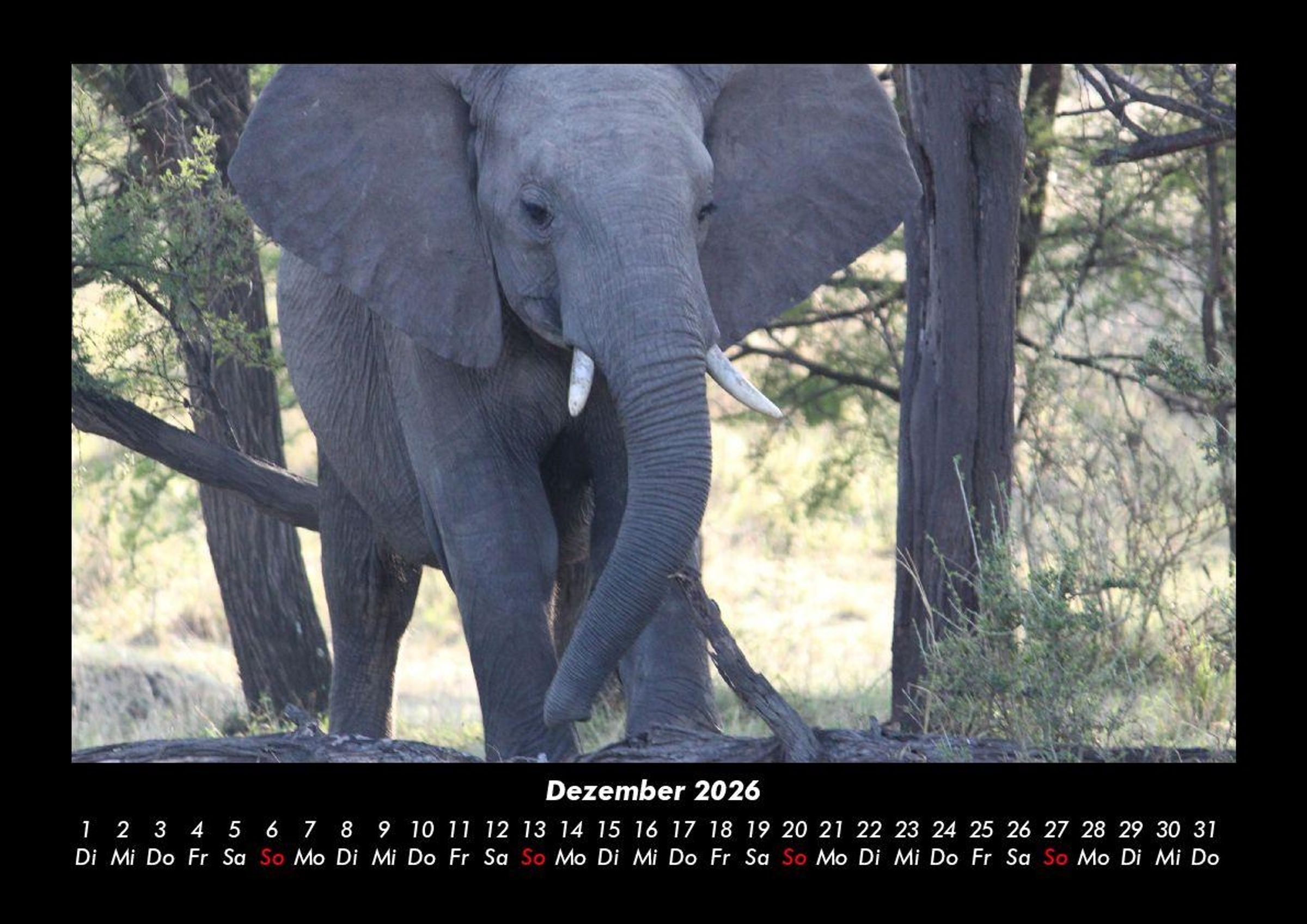 Elefanten - Die sanften Riesen Afrikas 2026 Motivkalender DIN A3 Vero-Kalender erhalten Sie mit Motiven aus den verschiedensten Themenbereichen wie Natur, Blumen und Landschaft, Tierwelt, Architektur, Reise und Urlaub, Technik, Automobil und Eisenbahn, Emotionen, Sport und Musik. Gedruckt werden die Monats-Kalender aus dem Vero Verlag auf hochwertigem Kalenderbogen in Premium-Qualität und verschiedenen Größen. Die Vielfältigkeit der Motive unserer Foto-Kalender ist dank der Zusammenarbeit mit kreativen Fotografen möglich.