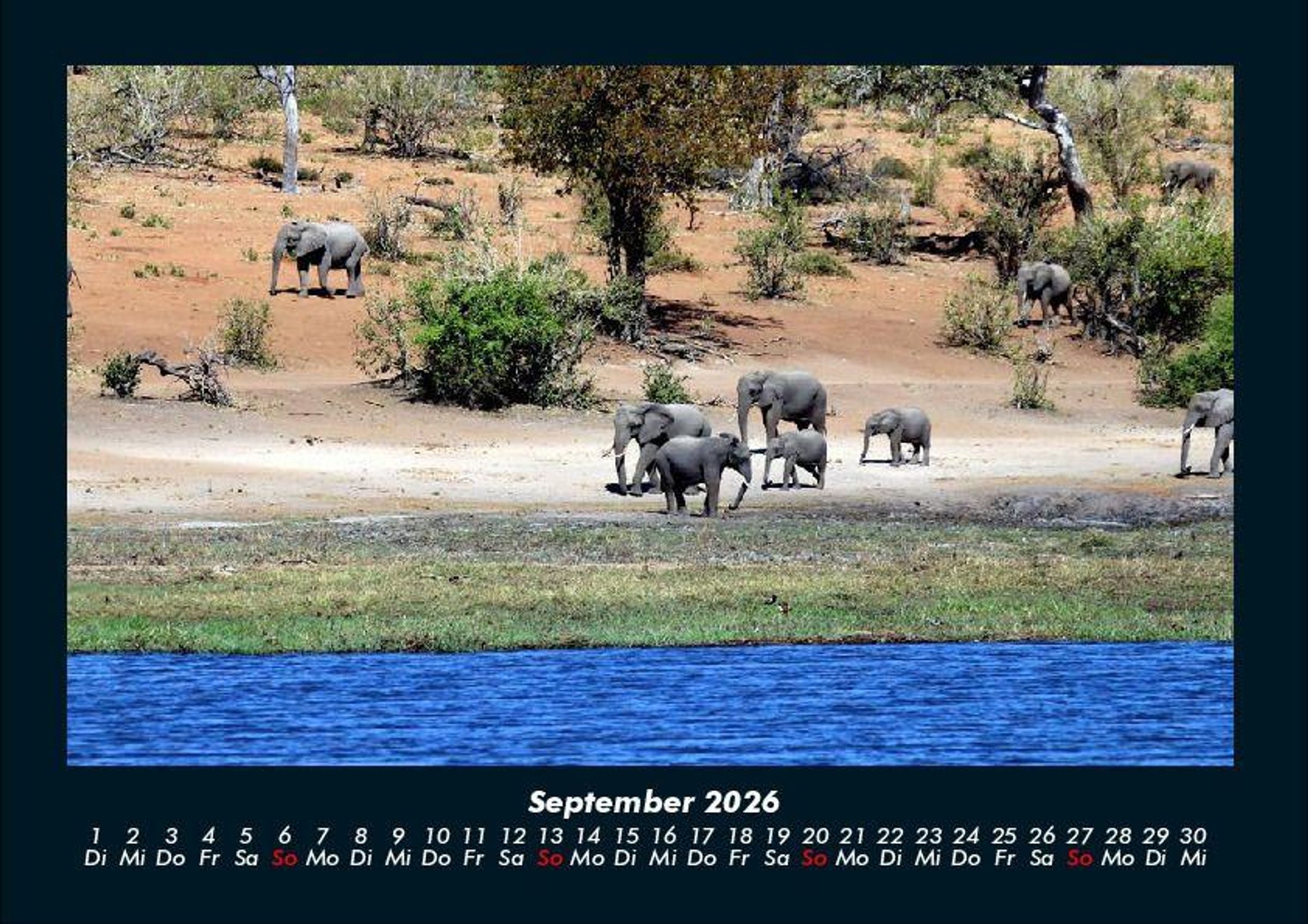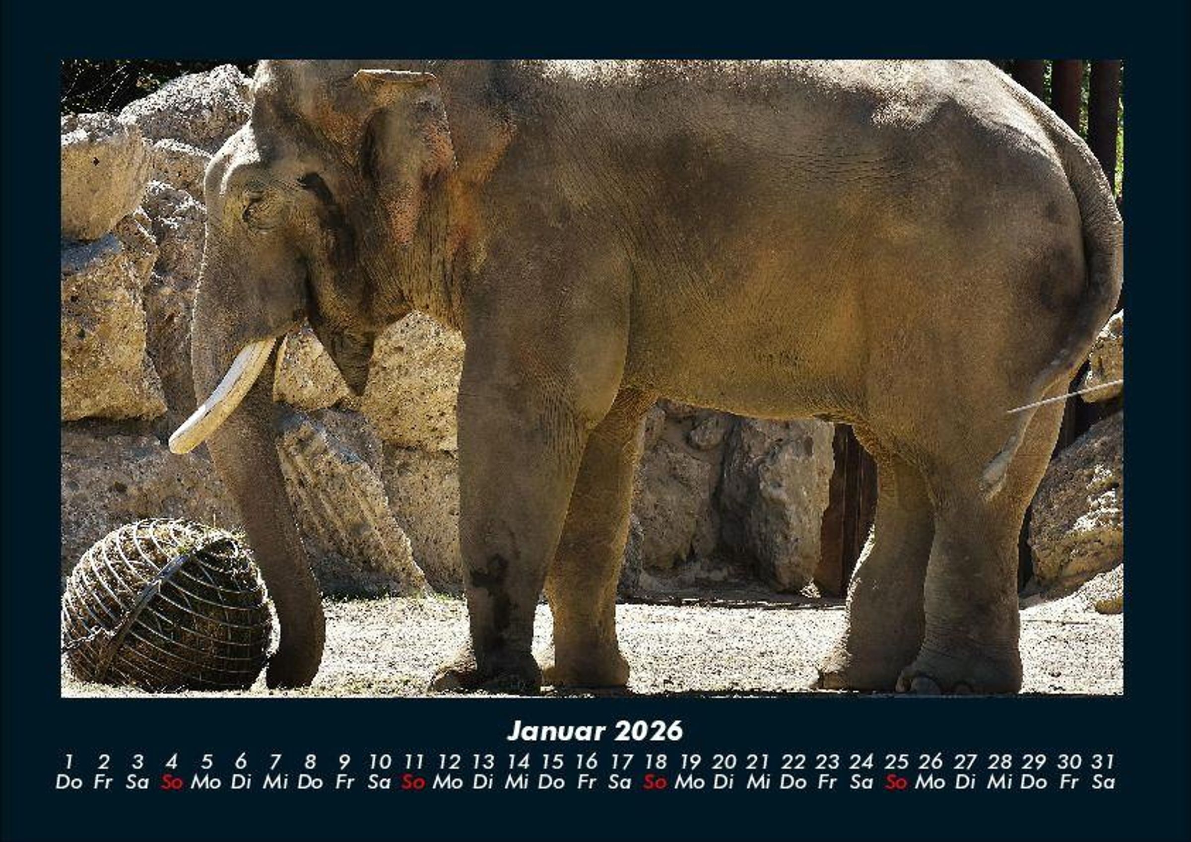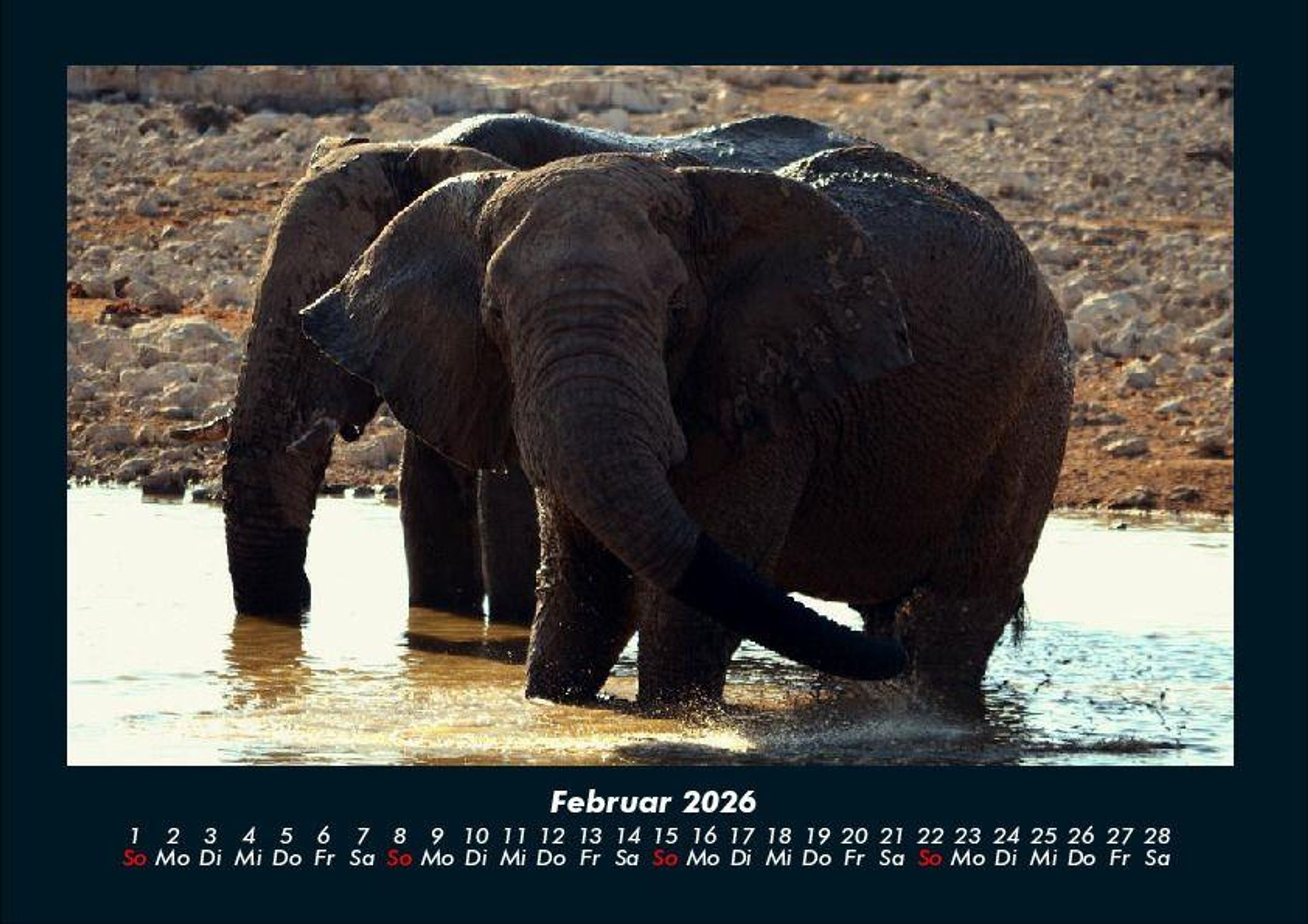 Elefanten - Die sanften Riesen Afrikas 2026 Motivkalender DIN A4 Vero-Kalender erhalten Sie mit Motiven aus den verschiedensten Themenbereichen wie Natur, Blumen und Landschaft, Tierwelt, Architektur, Reise und Urlaub, Technik, Automobil und Eisenbahn, Emotionen, Sport und Musik. Gedruckt werden die Monats-Kalender aus dem Vero Verlag auf hochwertigem Kalenderbogen in Premium-Qualität und verschiedenen Größen. Die Vielfältigkeit der Motive unserer Foto-Kalender ist dank der Zusammenarbeit mit kreativen Fotografen möglich.