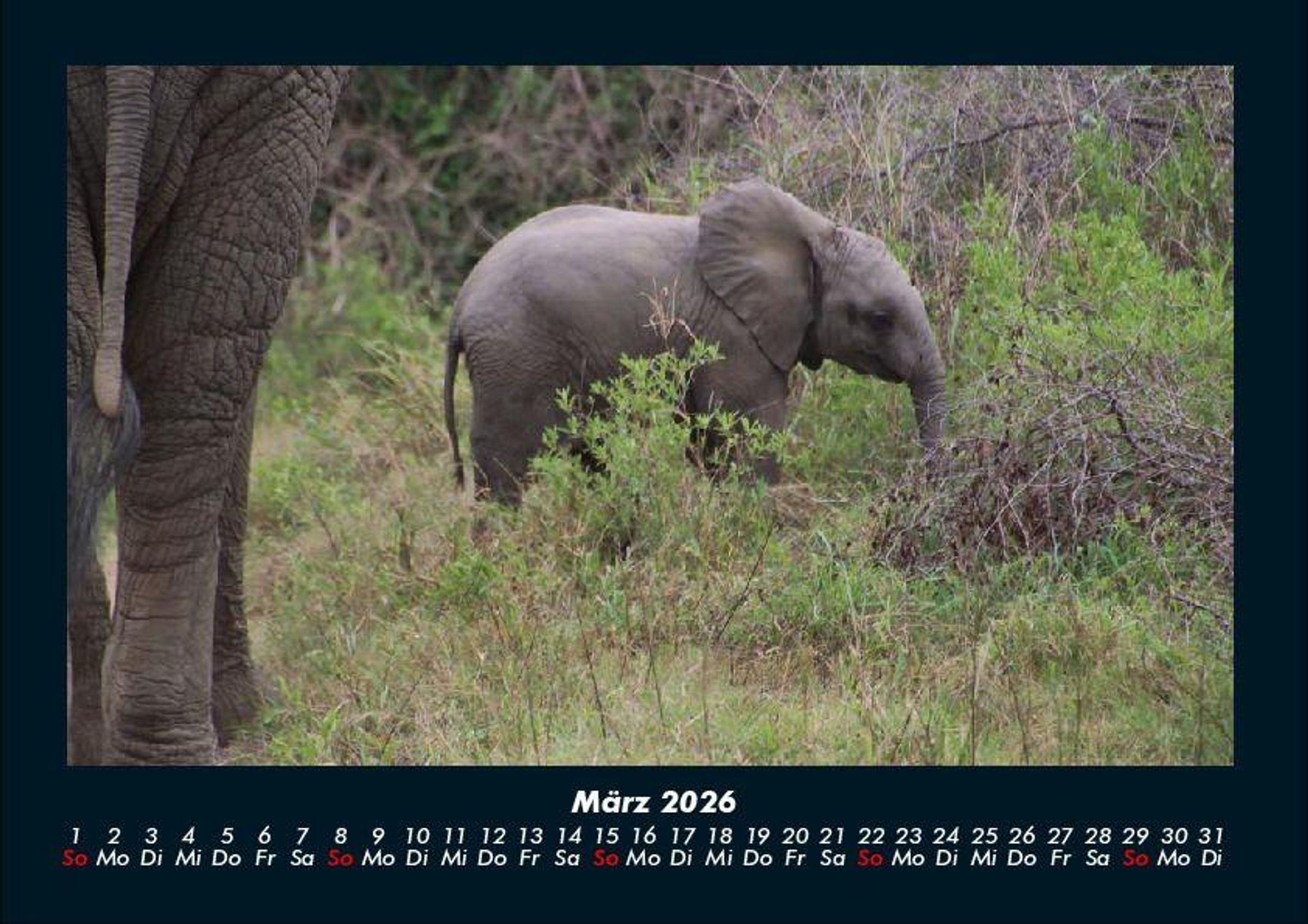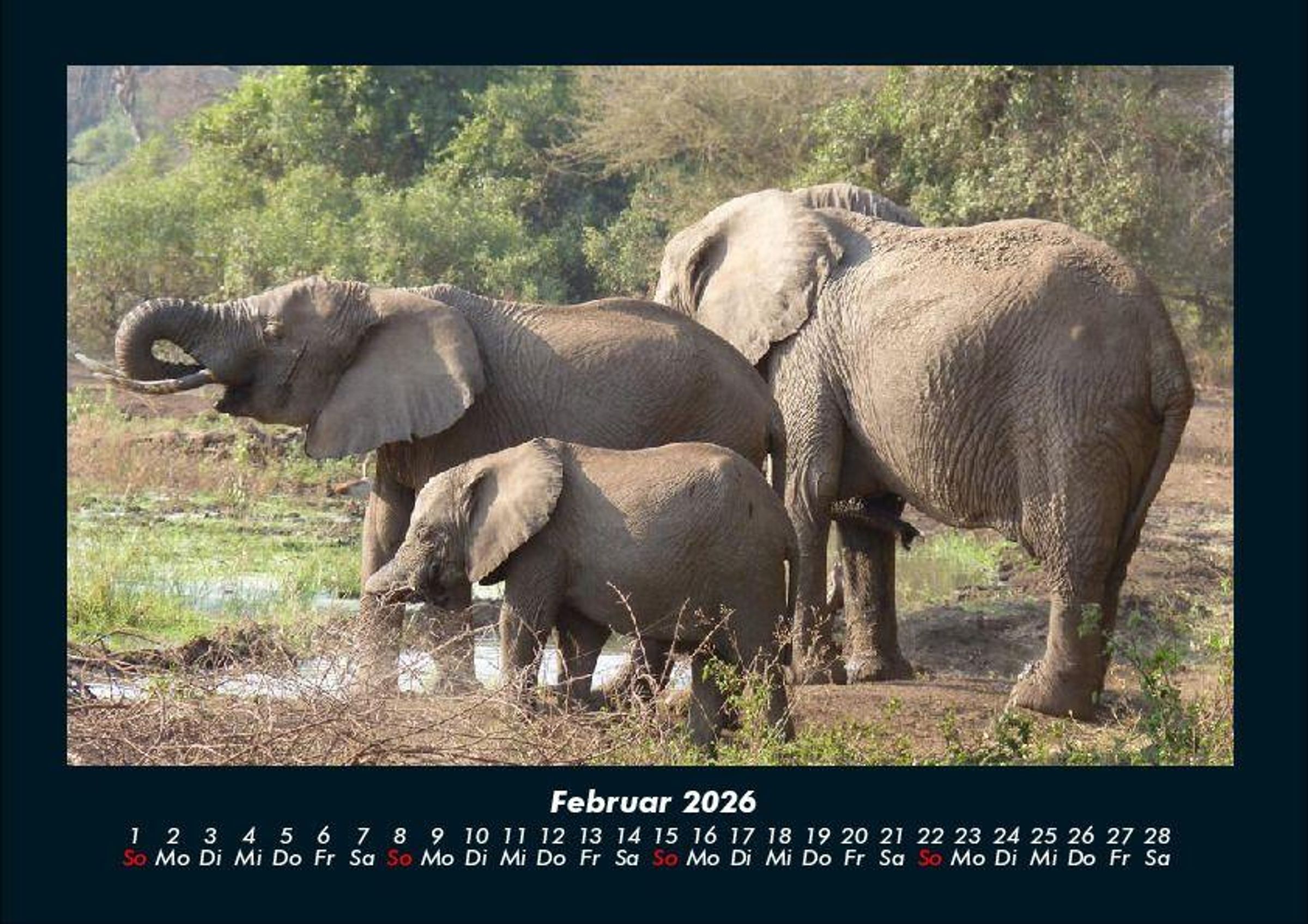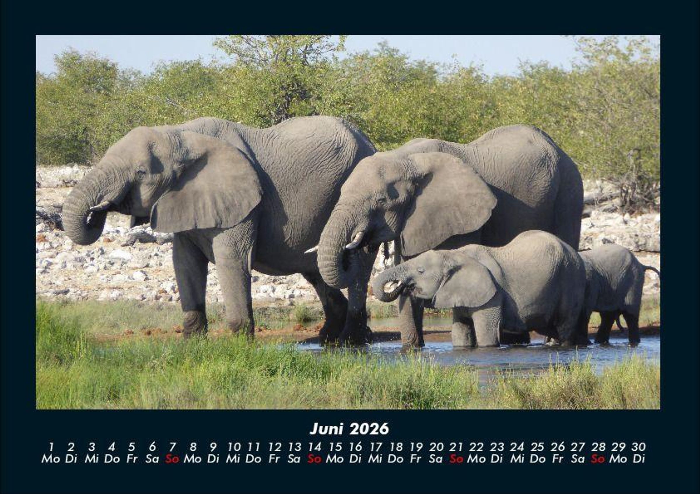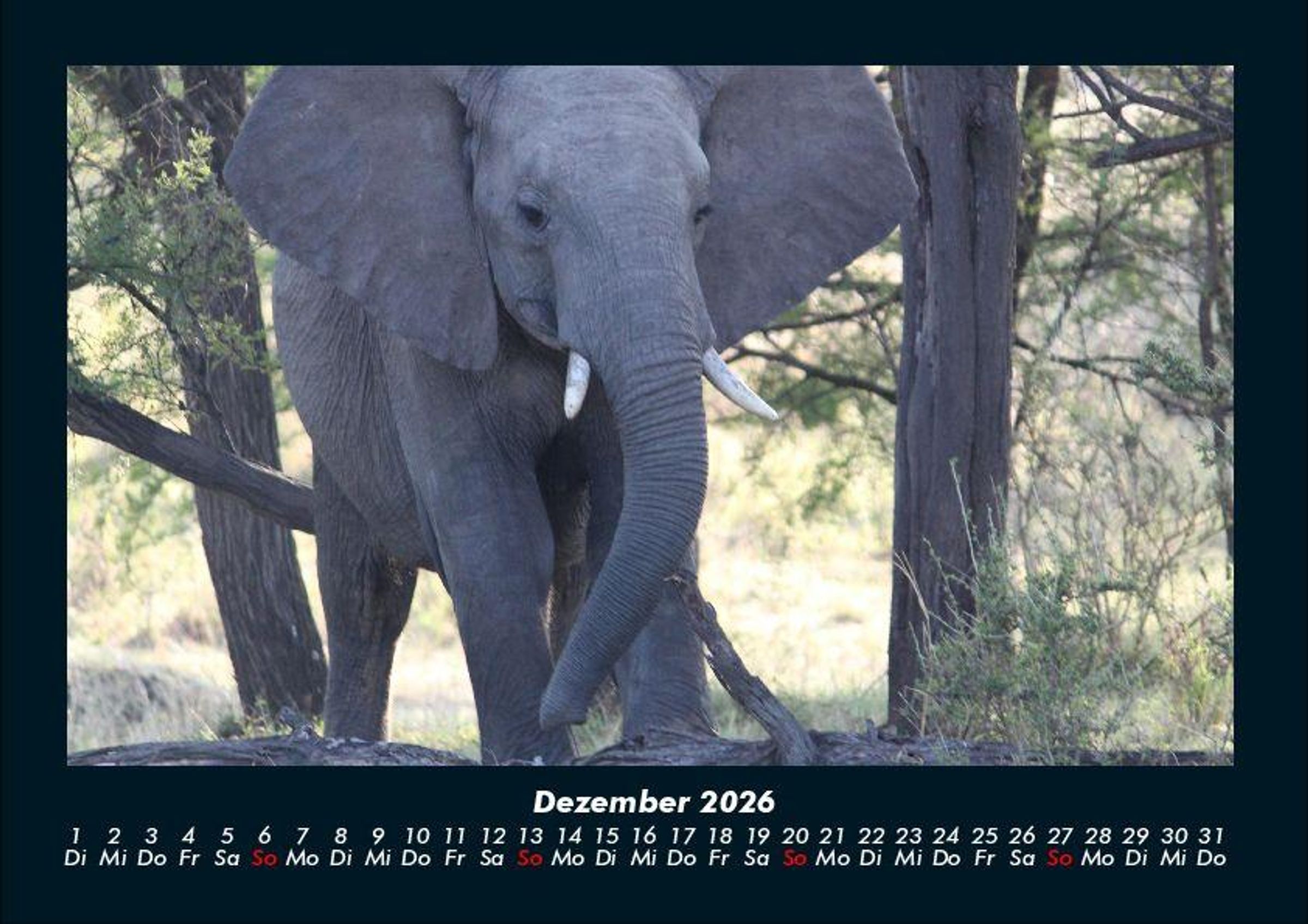Elefanten - Die sanften Riesen Afrikas 2026 Motivkalender DIN A4 Vero-Kalender erhalten Sie mit Motiven aus den verschiedensten Themenbereichen wie Natur, Blumen und Landschaft, Tierwelt, Architektur, Reise und Urlaub, Technik, Automobil und Eisenbahn, Emotionen, Sport und Musik. Gedruckt werden die Monats-Kalender aus dem Vero Verlag auf hochwertigem Kalenderbogen in Premium-Qualität und verschiedenen Größen. Die Vielfältigkeit der Motive unserer Foto-Kalender ist dank der Zusammenarbeit mit kreativen Fotografen möglich.