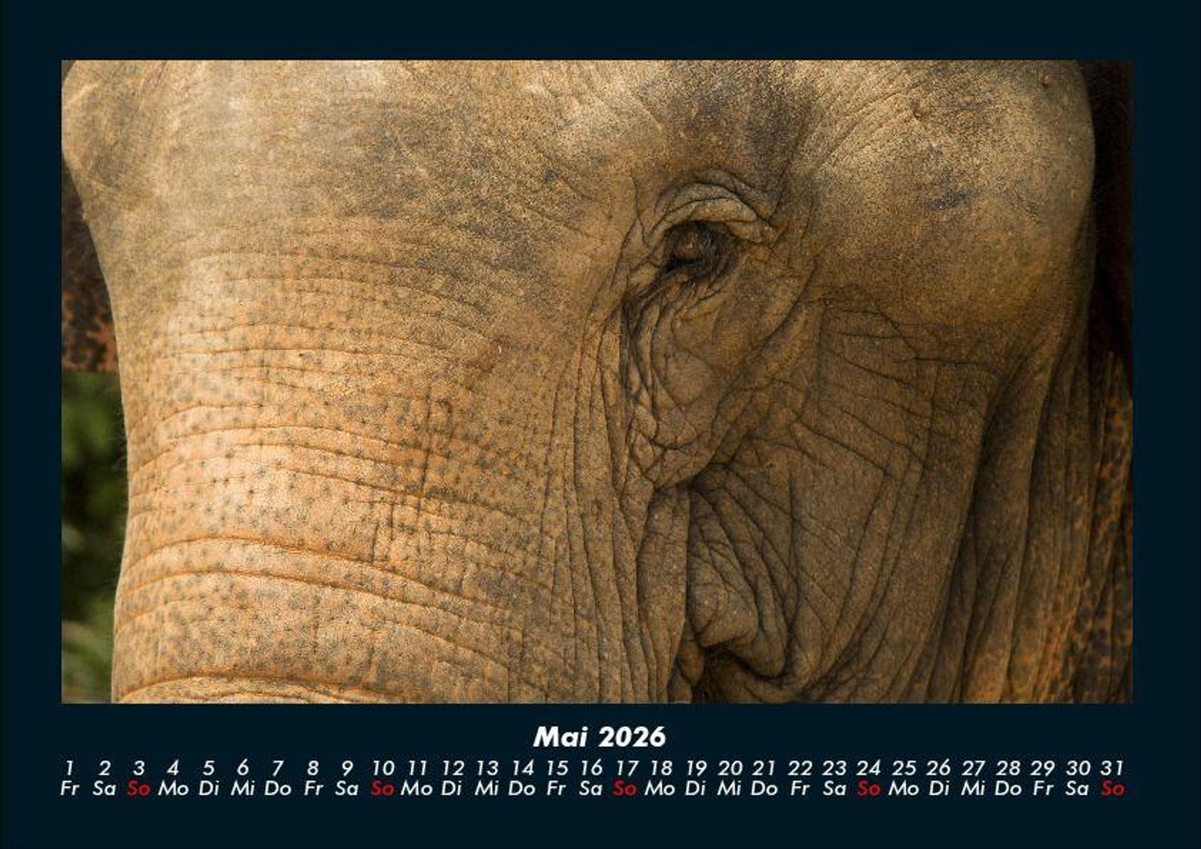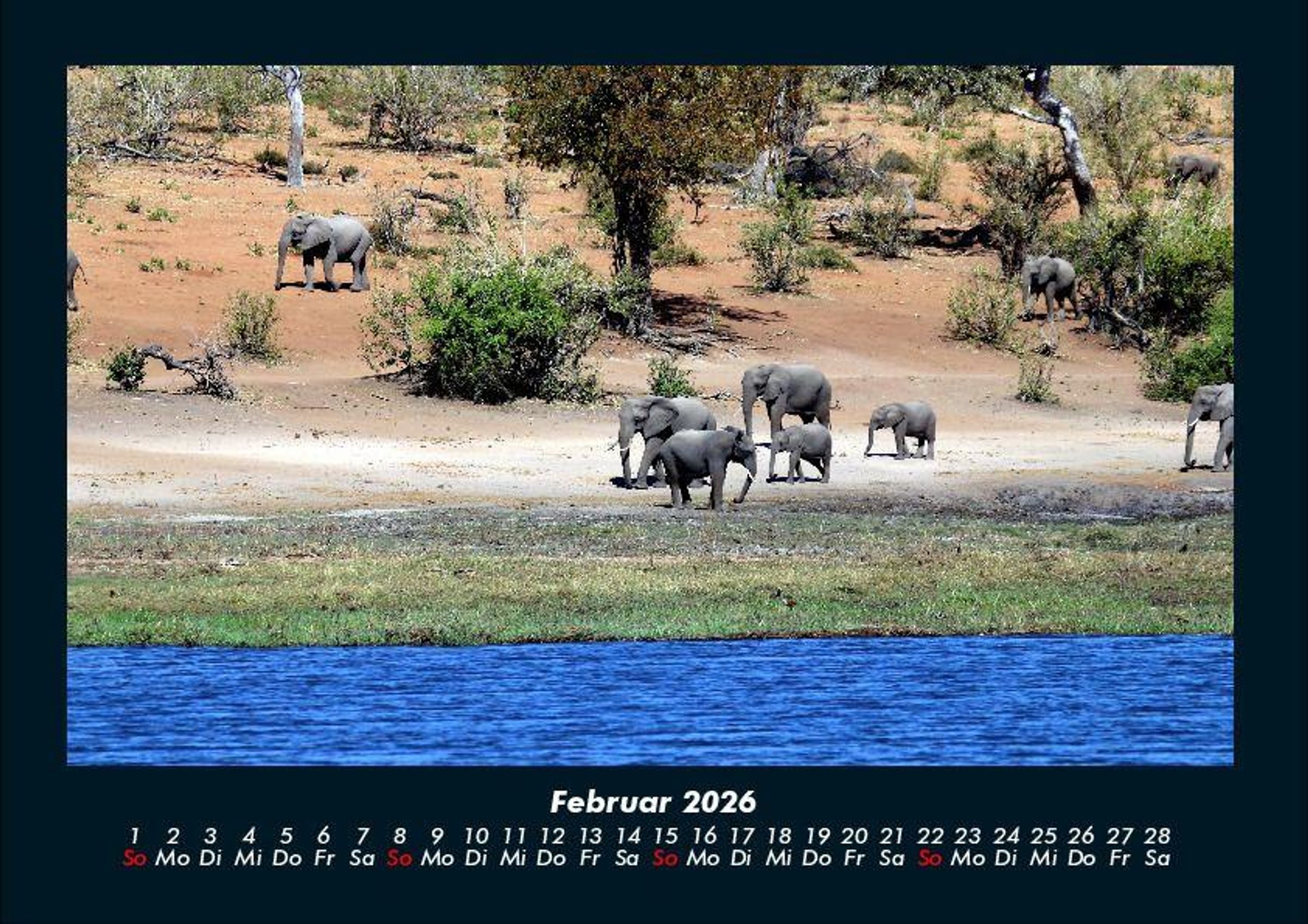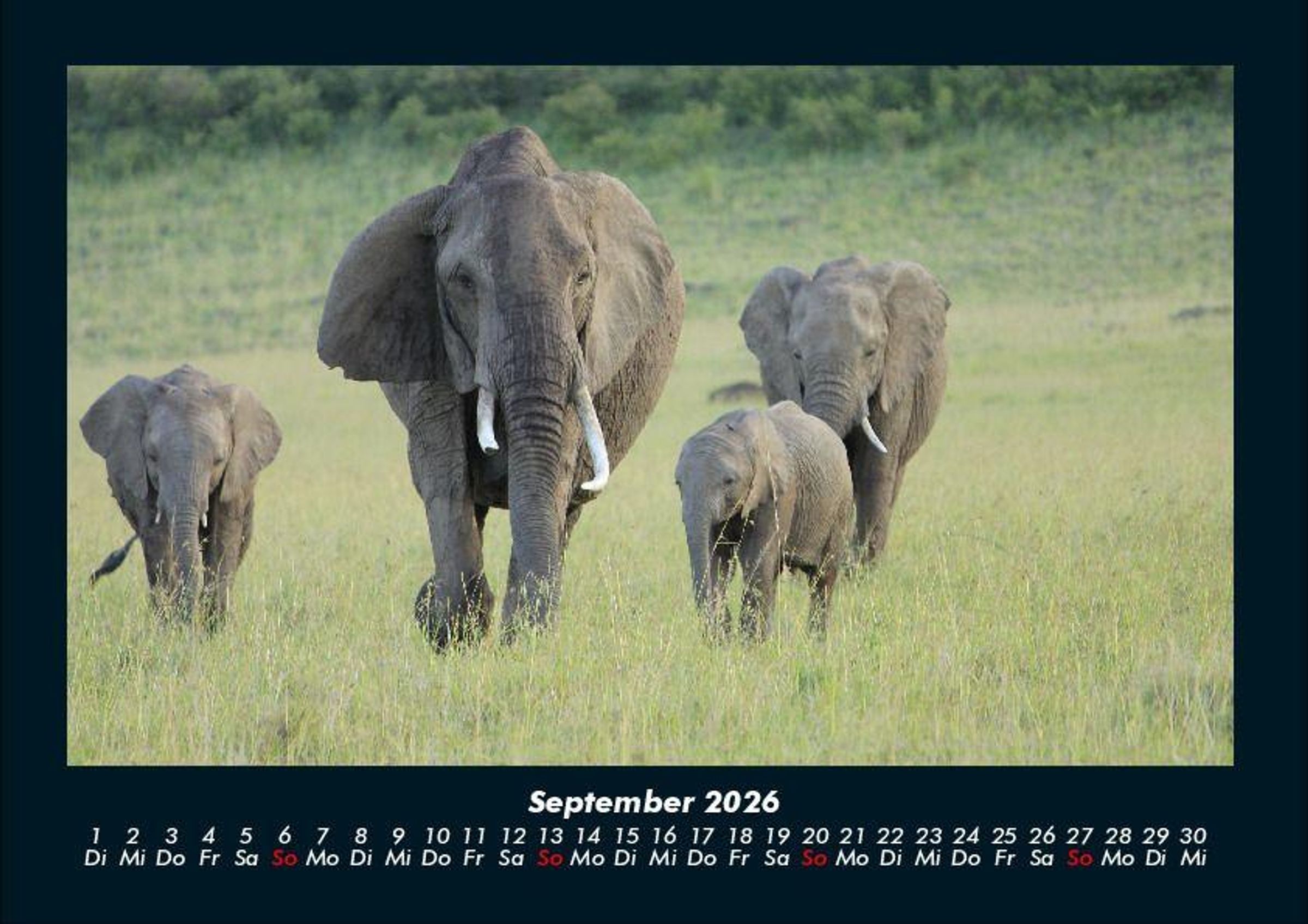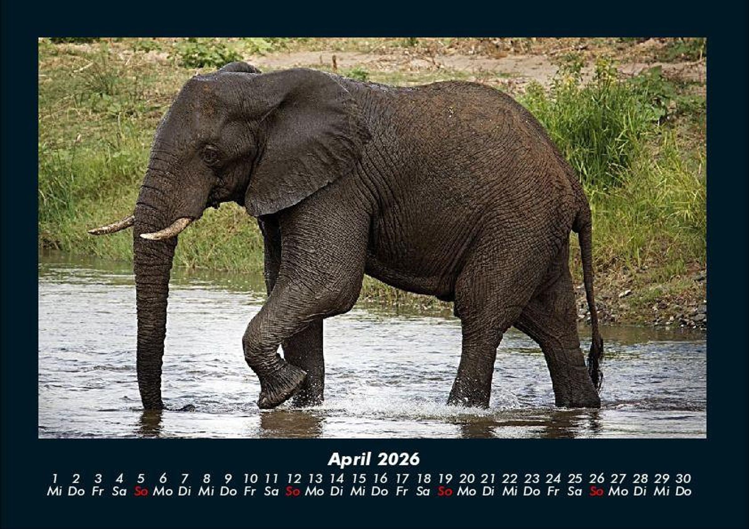 Elefanten - Die sanften Riesen Afrikas 2026 Motivkalender DIN A4 Vero-Kalender erhalten Sie mit Motiven aus den verschiedensten Themenbereichen wie Natur, Blumen und Landschaft, Tierwelt, Architektur, Reise und Urlaub, Technik, Automobil und Eisenbahn, Emotionen, Sport und Musik. Gedruckt werden die Monats-Kalender aus dem Vero Verlag auf hochwertigem Kalenderbogen in Premium-Qualität und verschiedenen Größen. Die Vielfältigkeit der Motive unserer Foto-Kalender ist dank der Zusammenarbeit mit kreativen Fotografen möglich.