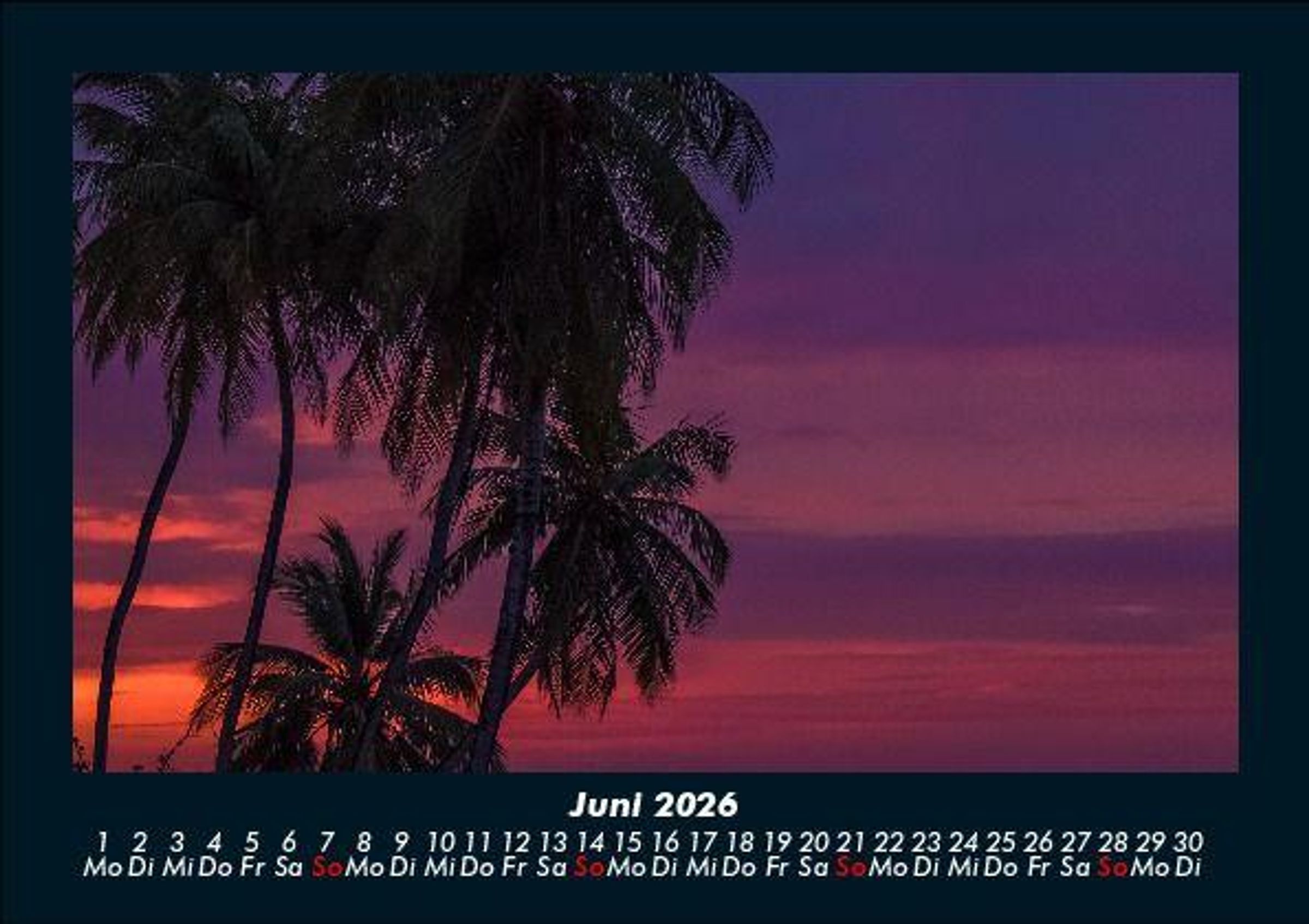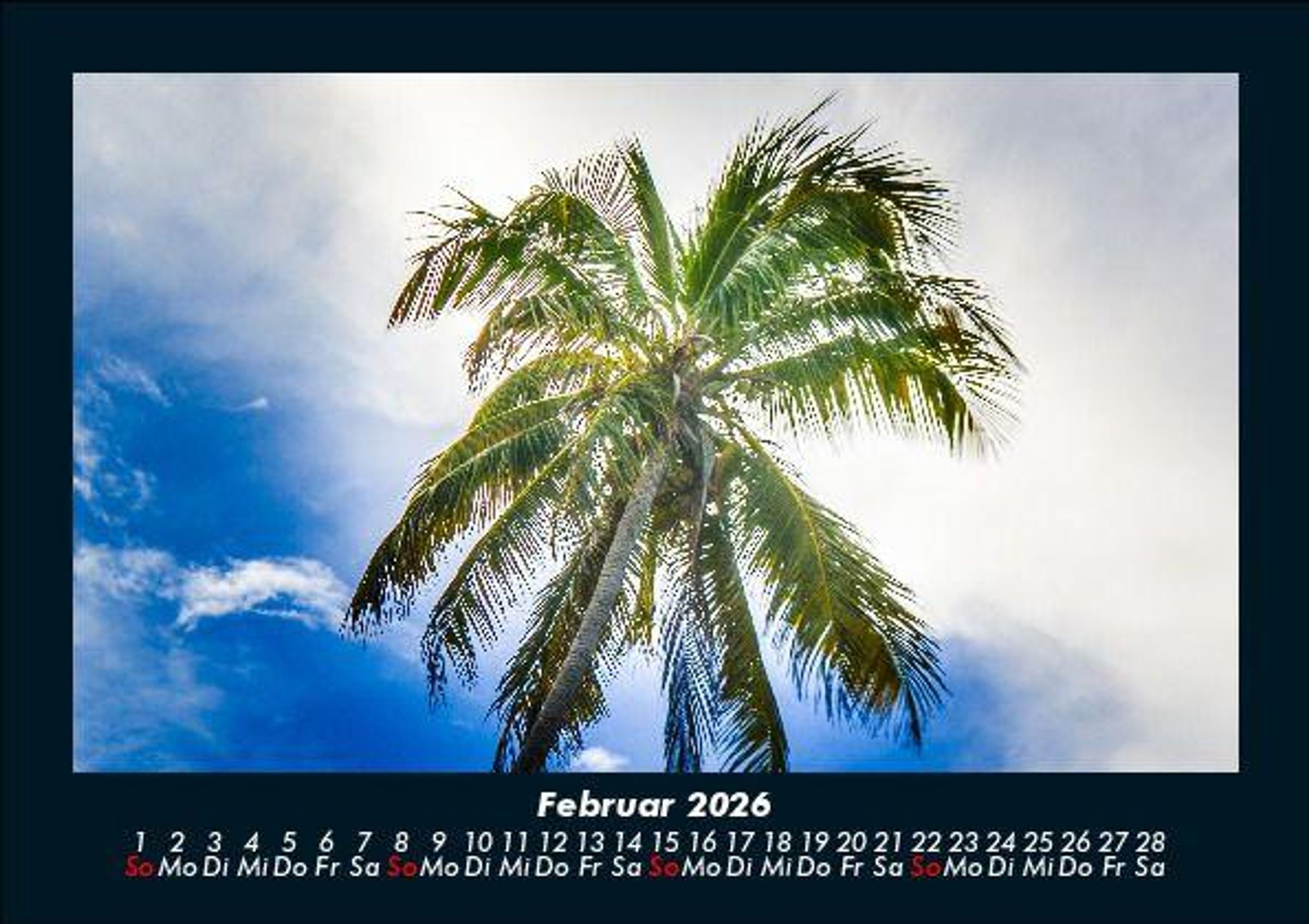Fernweh 2026 Motivkalender DIN A5 Dieser Kalender inspiriert mit idyllischen Fotos von schönen Stränden, Palmen sowie dem Meer. Vero-Kalender erhalten Sie mit Motiven aus den verschiedensten Themenbereichen wie Natur, Blumen und Landschaft, Tierwelt, Architektur, Reise und Urlaub, Technik, Automobil und Eisenbahn, Emotionen, Sport und Musik. Gedruckt werden die Monats-Kalender aus dem Vero Verlag auf hochwertigem Kalenderbogen in Premium-Qualität und verschiedenen Größen. Die Vielfältigkeit der Motive unserer Foto-Kalender ist dank der Zusammenarbeit mit kreativen Fotografen möglich.